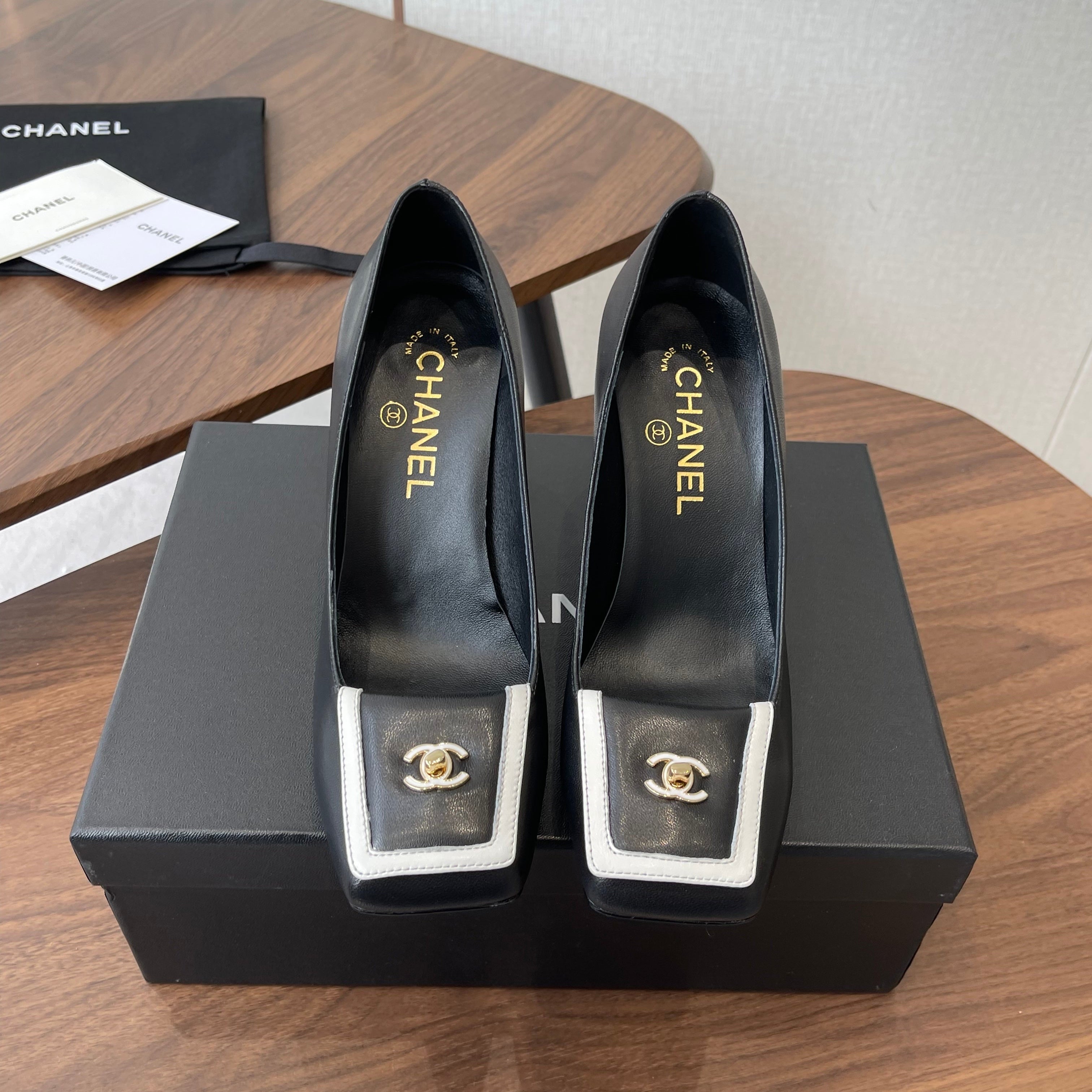 CC Square-Toe Pumps 65mm Black Sheepskin 427015
