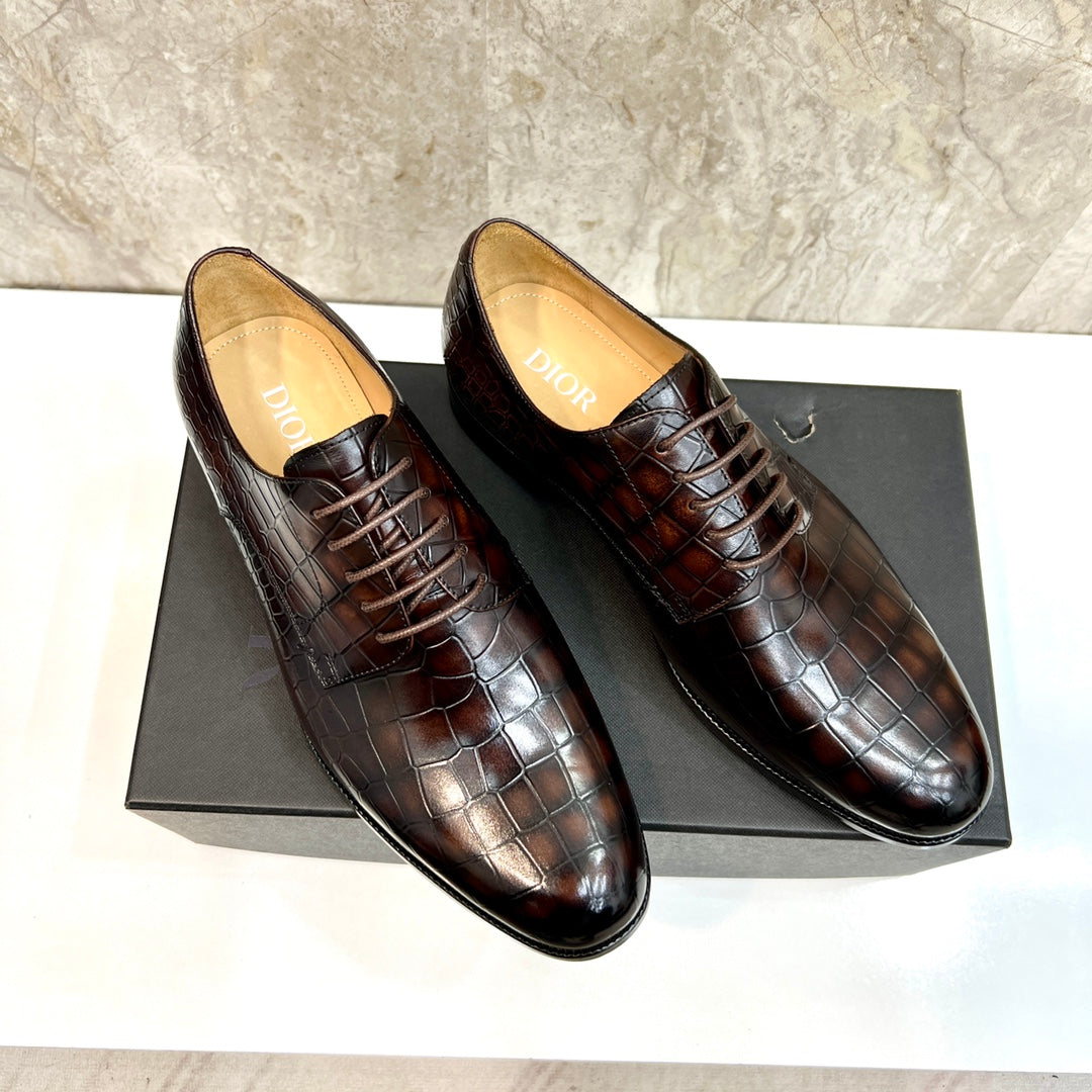 CD CROCODILE MOTIF BASIC OXFORD SIENNA CALFSKIN