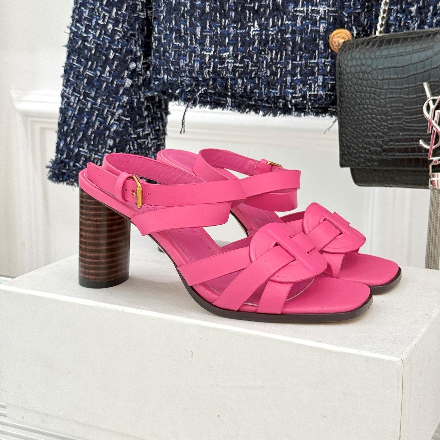 CD D-Club Heeled Sandal 80mm Pink Calfskin 473832