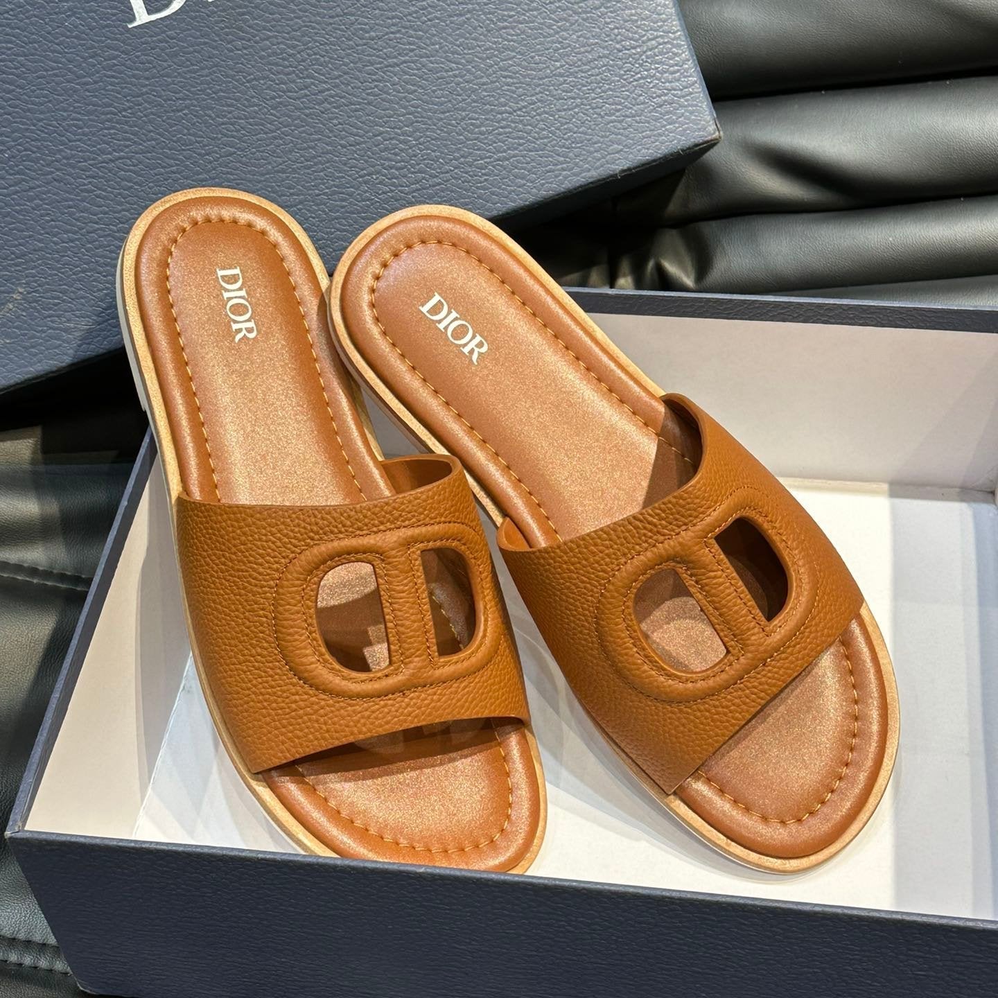 CD D-CLUB SLIDE SLIPPER TIGER GRAINED CALFSKIN