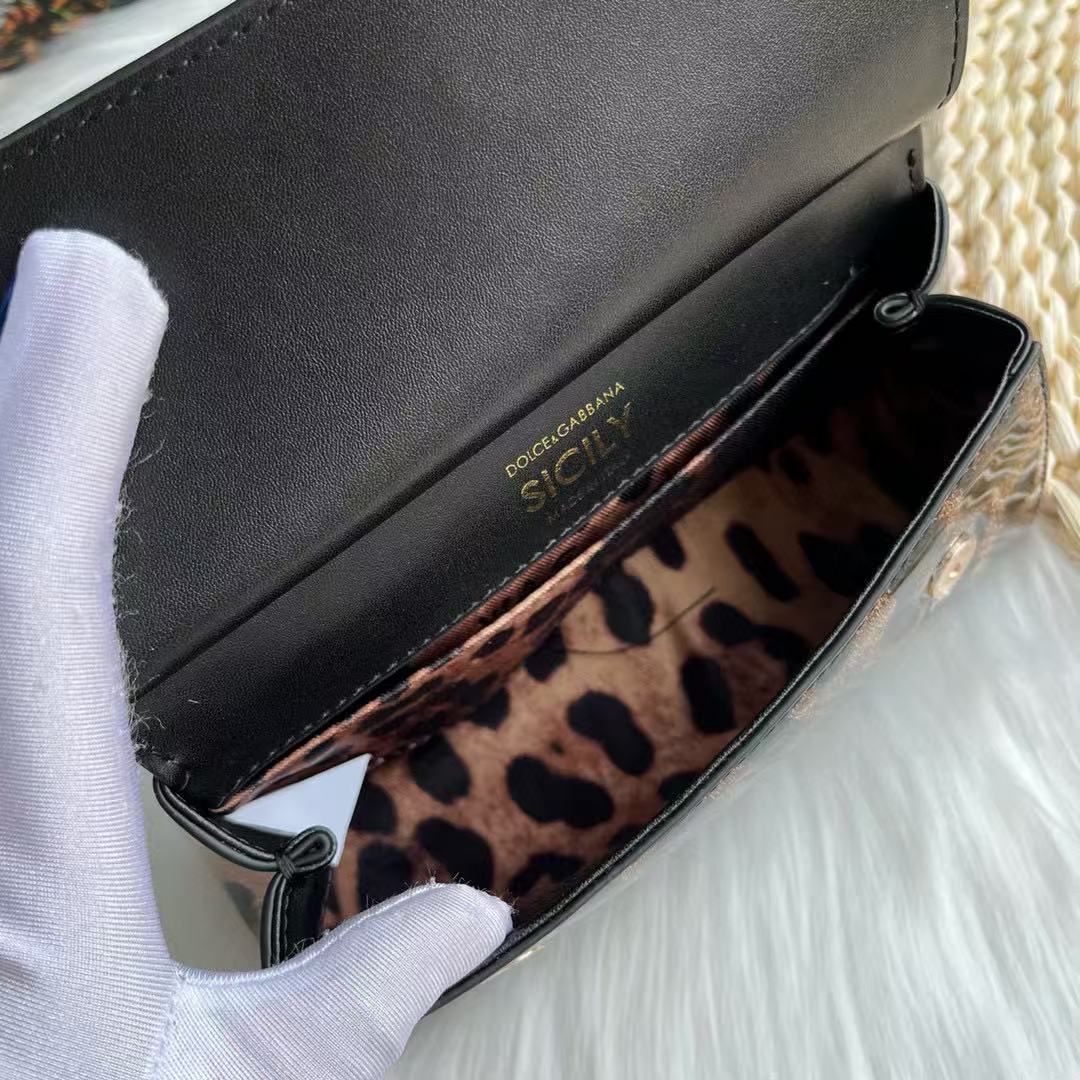 DG Medium Sicily Bag 18cm In Leopard-Print Polished Calfskin