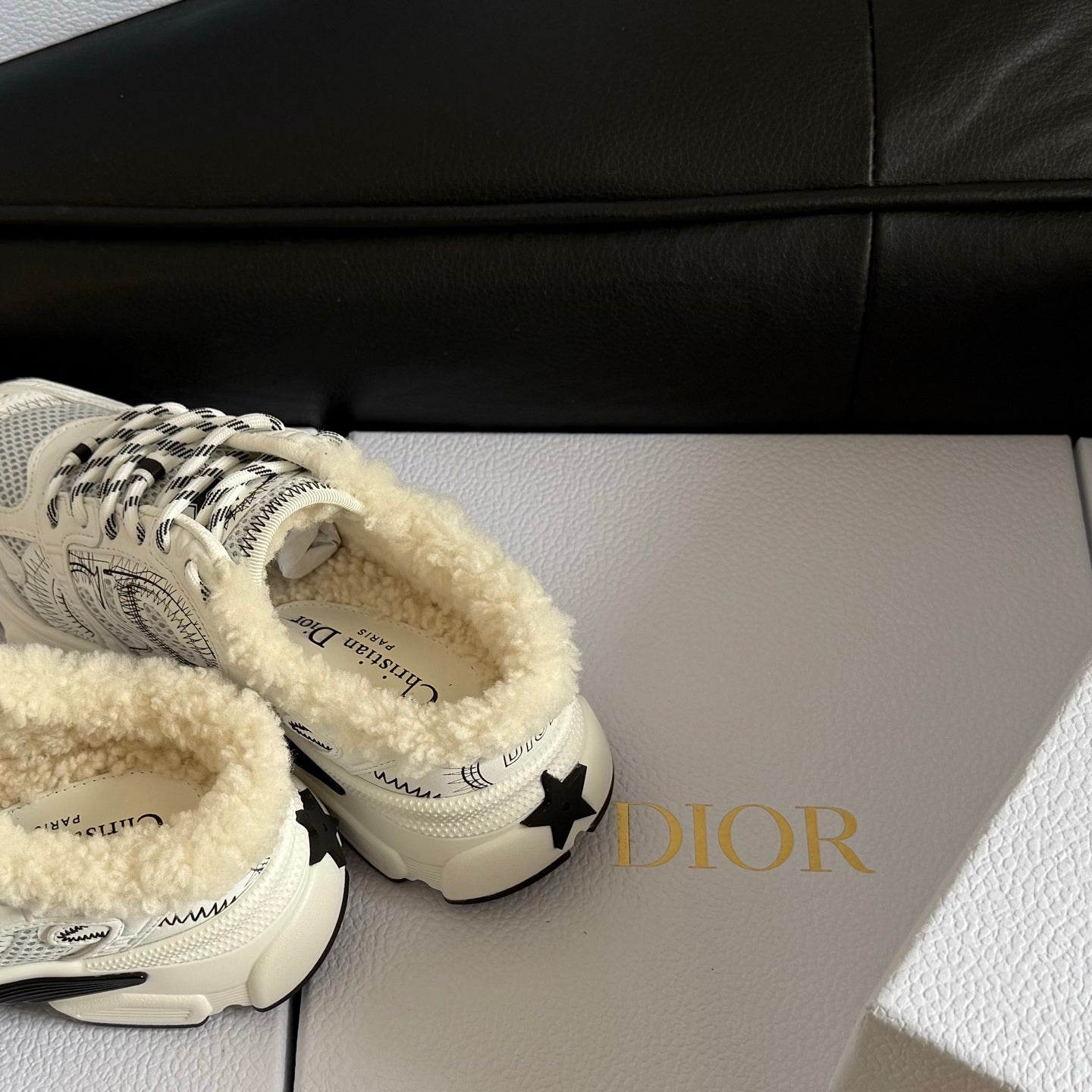 Dior 25 Chrono Sneakers Light Beige Fur Calfskin 530323