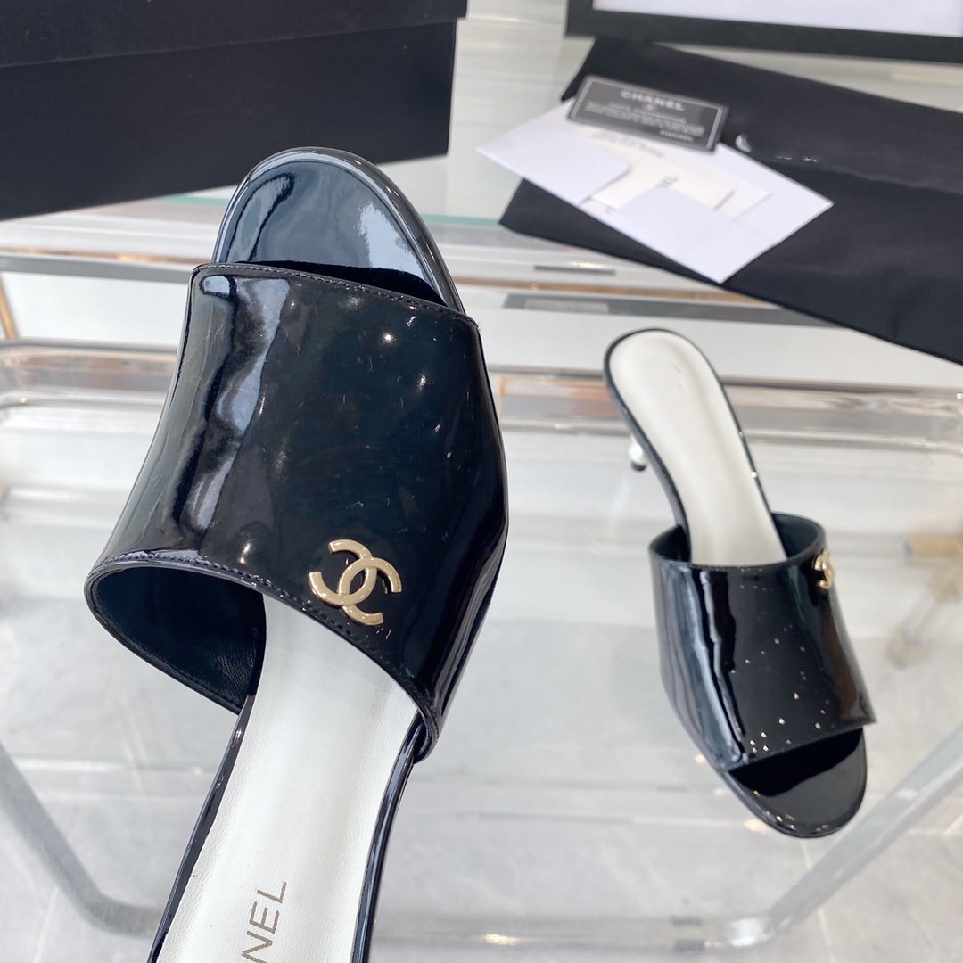 high heel 70 mule sandals black white patent calfskin