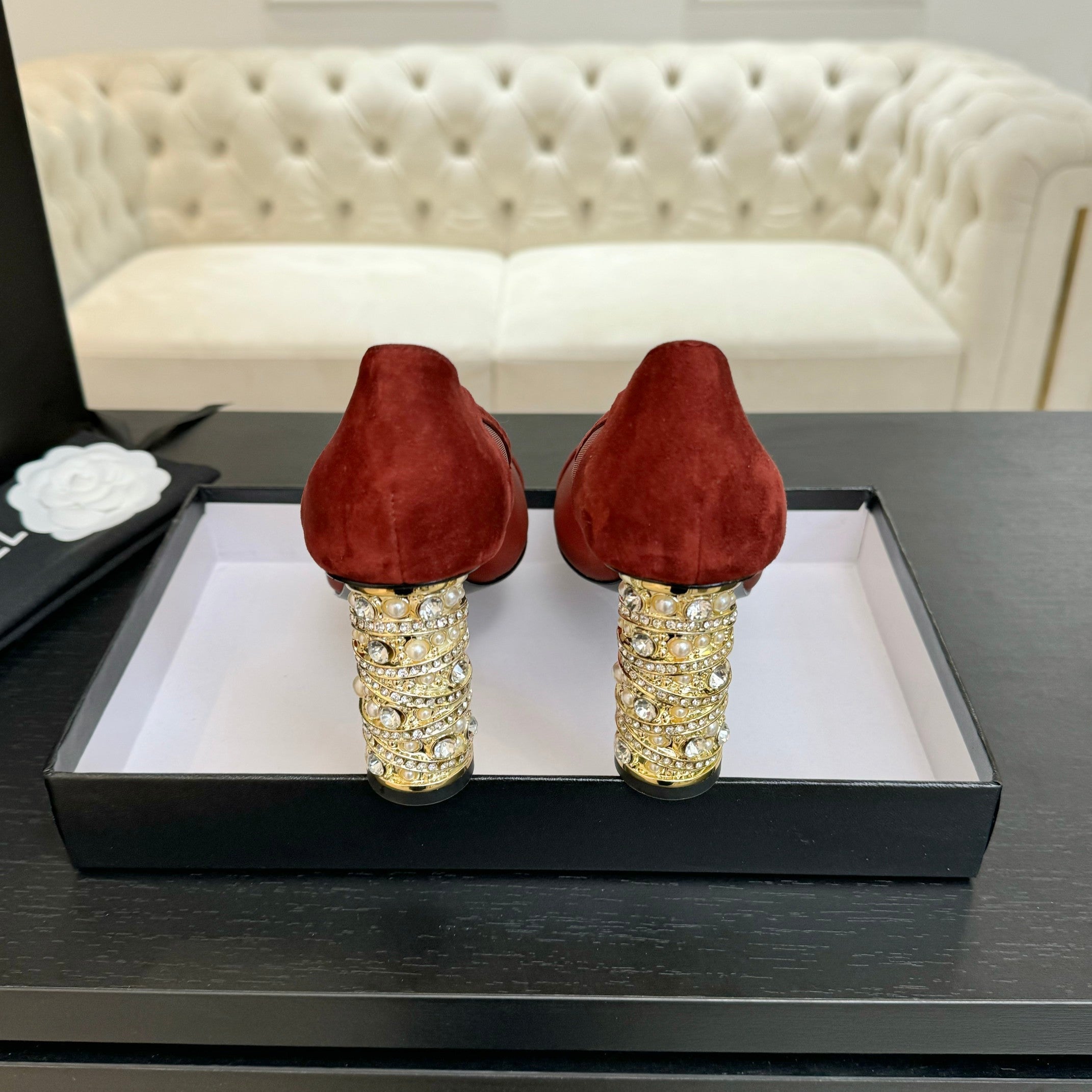 HIGH HEEL 75 MM SLINGBACK IN CHOCOLATE BROWN MONOGRAM CALFSKIN WITH CRYSTAL