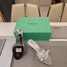 BOW-EMBELLISHED HIGH MULES IN SILVER METALLIC SHEEPSKIN