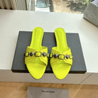 CAGOLE FLAT MULES IN LIME YELLOW CALFSKIN