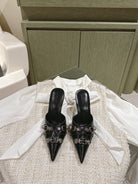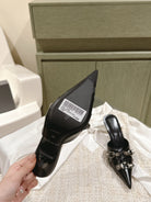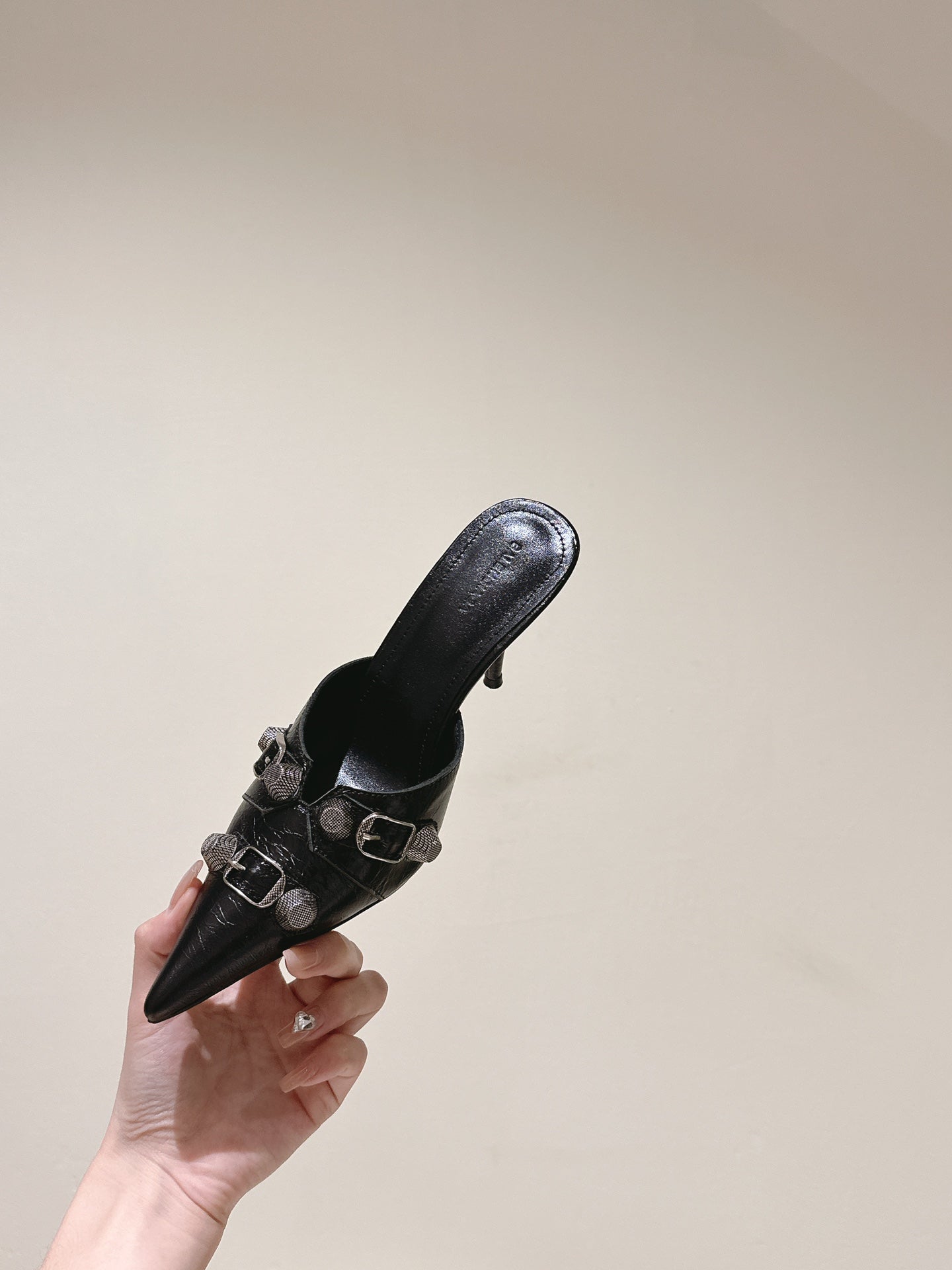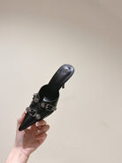 CAGOLE POINTED HIGH MULES IN BLACK SHINY CALFSKIN