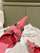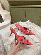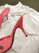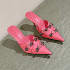 CAGOLE POINTED HIGH MULES IN ROMAN PINK SHINY CALFSKIN