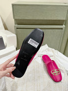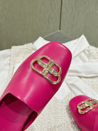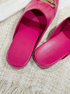 FLAT MULES IN DEEP PINK SMOOTH CALFSKIN GOLD BUCKLE