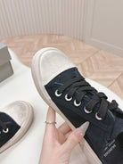 PARIS MULES IN BLACK DESTROYED DENIM AND RUBBER