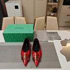 POINTED BALLET FLATS IN RED SHINY CRACKED SHEEPSKIN