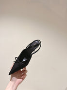 POINTED HIGH SLINGBLACK WITH BOW IN BLACK SILK