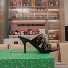 STRAPPY HIGH-HEELED SANDALS IN BLACK STUDDED WAX-OIL SHEEPSKIN