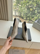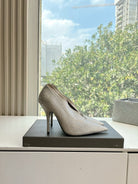 ZIPPER POINTED-TOE HIGH PUMPS IN BEIGE SUEDE ATTACHED SILVER CRYSTAL