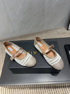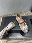 Alaia Mary Jane Flats Woven Pattern 25s In White Mix Caramel Brown Calfskin