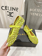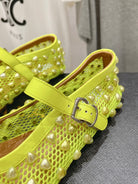 ALAIA PEARL MARY JANE SHOES IN NEON YELLOW MESH AND CALFSKIN