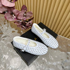 Alaia Strass Ballet Flats In White Calfskin With Fleece Lining 926039