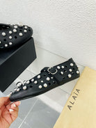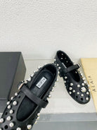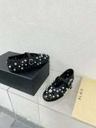 Alaila Ballet Flats In Black Lambskin Beaded 897246