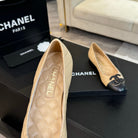 ballet flat beige quilted lambskin large black cc logo