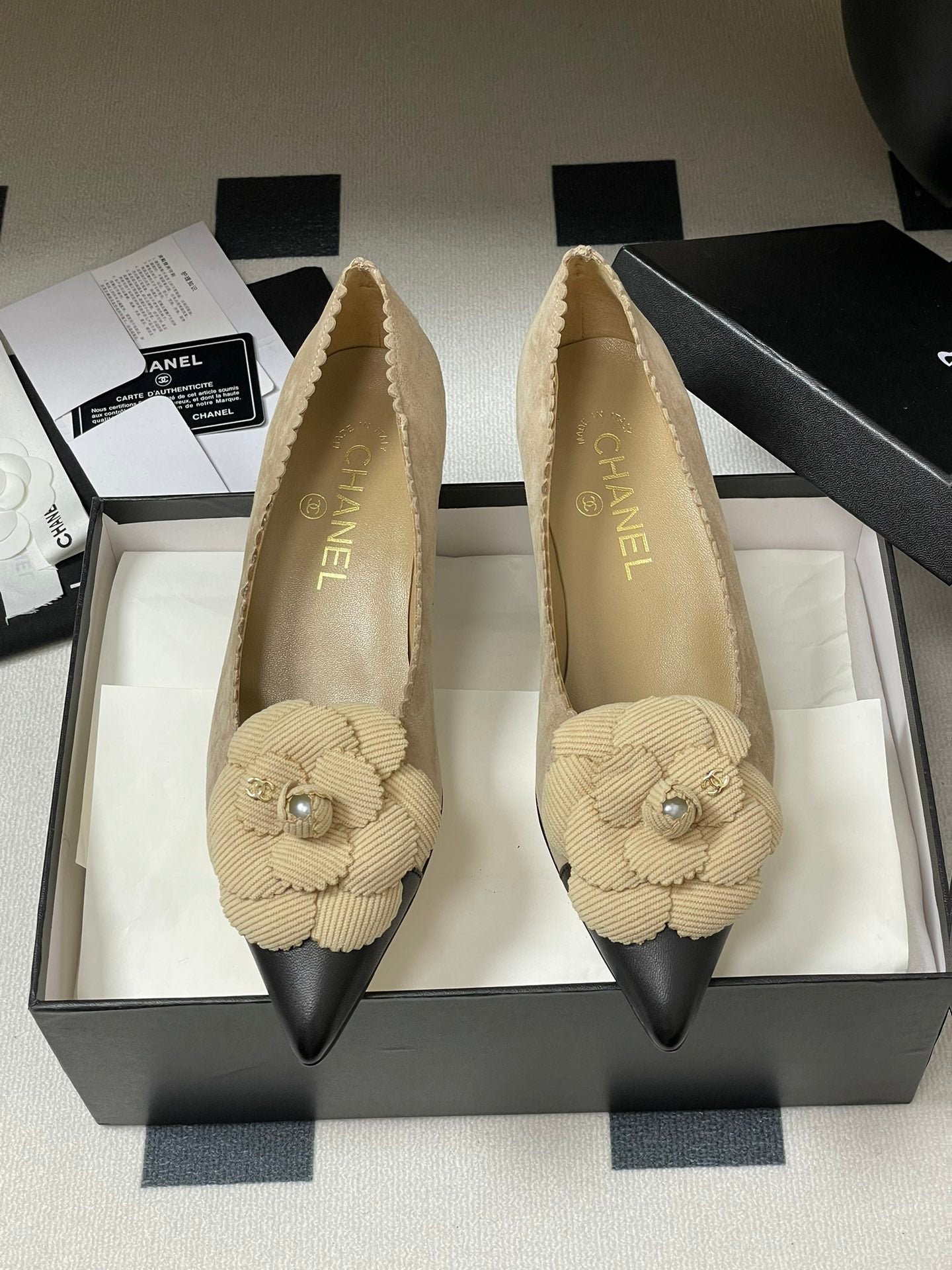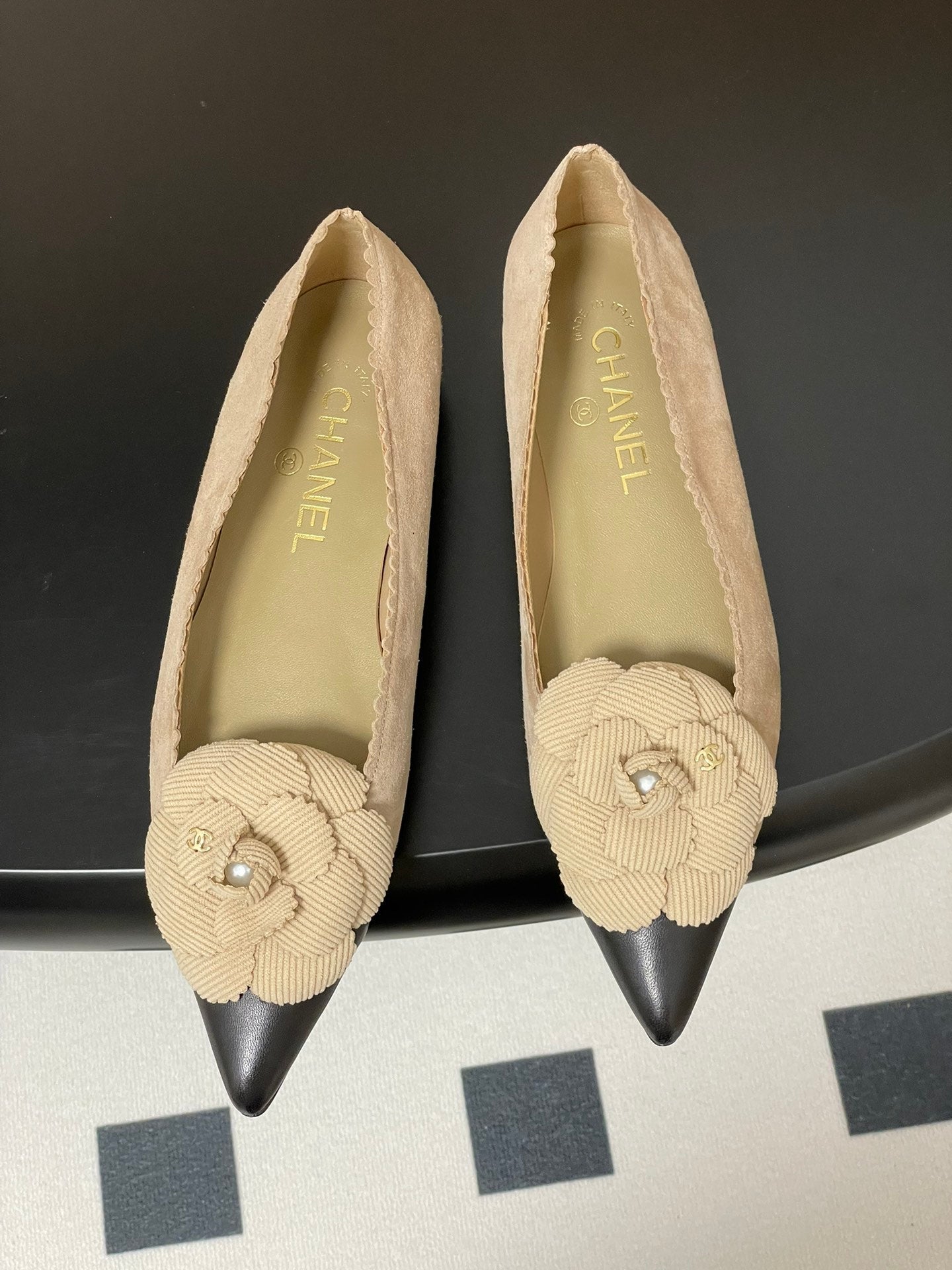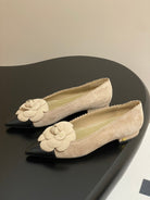 CC 25C Classic Camellia Pointed High Heels Flat 15mm Beige Suede 247608