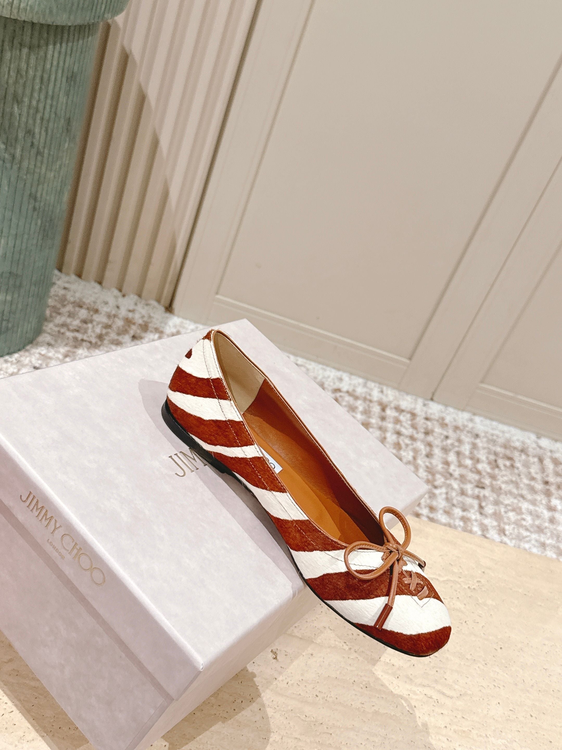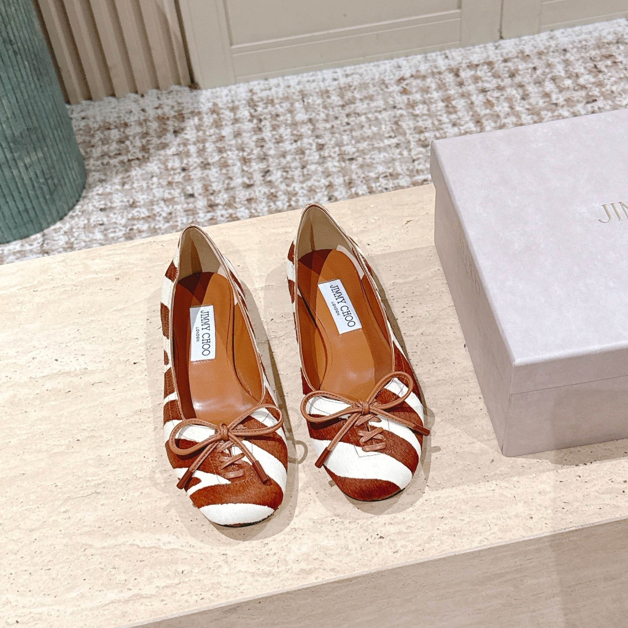 Jimmy 25s Ballet Flats 10mm Light Brown White Zebra Hair & Sheepskin 431865