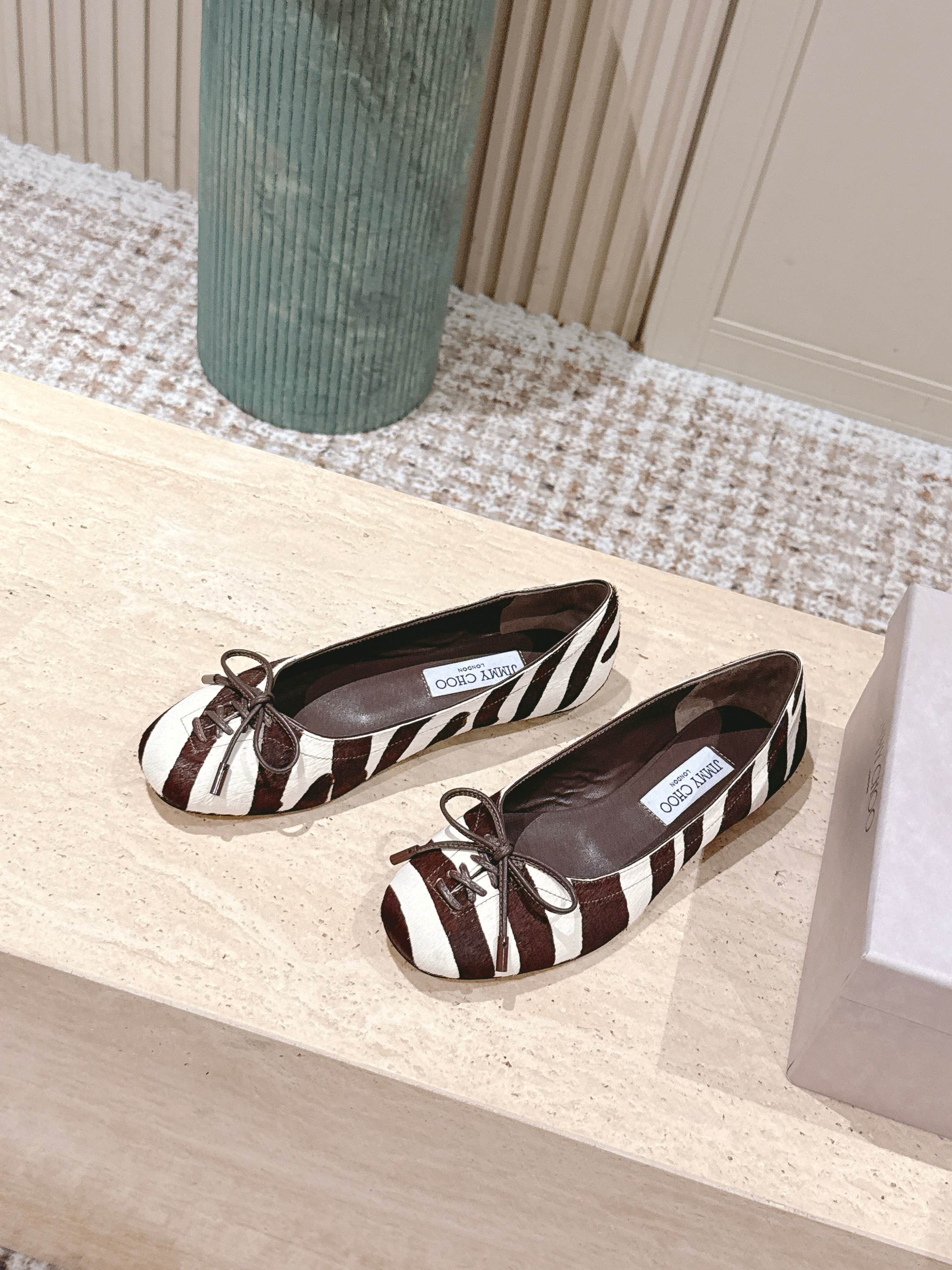 Jimmy 25s Ballet Flats 10mm Brown White Zebra Hair & Sheepskin 431868