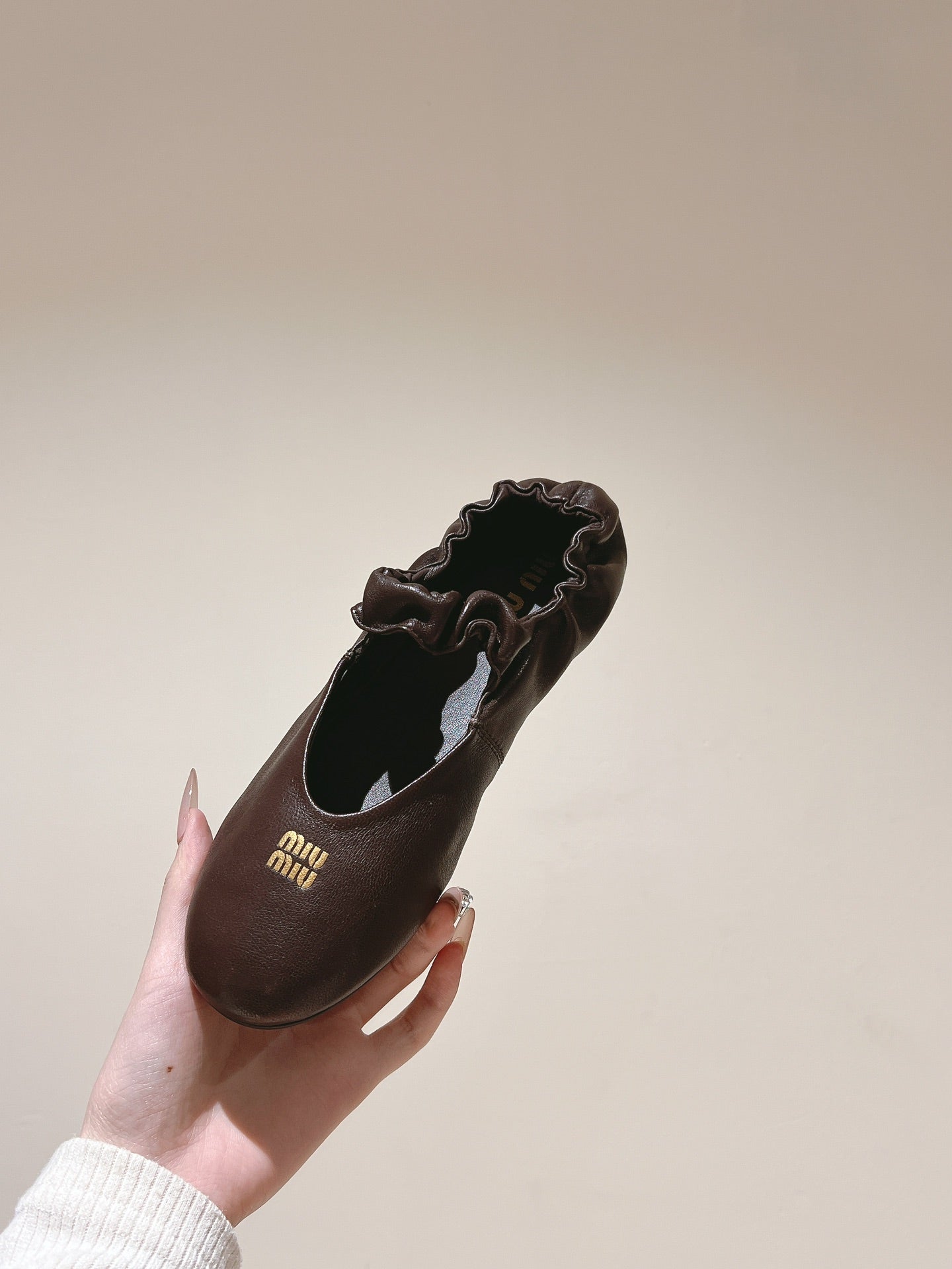 Miu Ruches Ballet Flat Brown Lambskin 445667