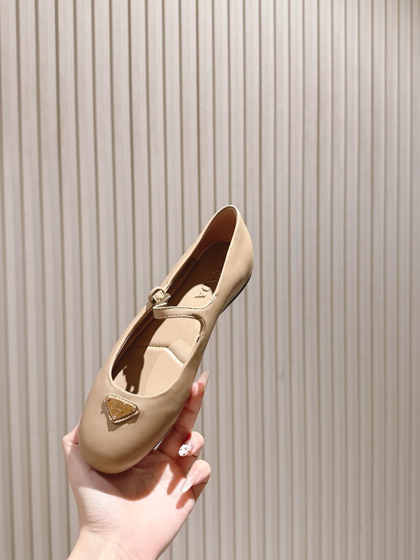 PRA 25s Ballet Flats with Small Buckle Beige Cowhide 449713