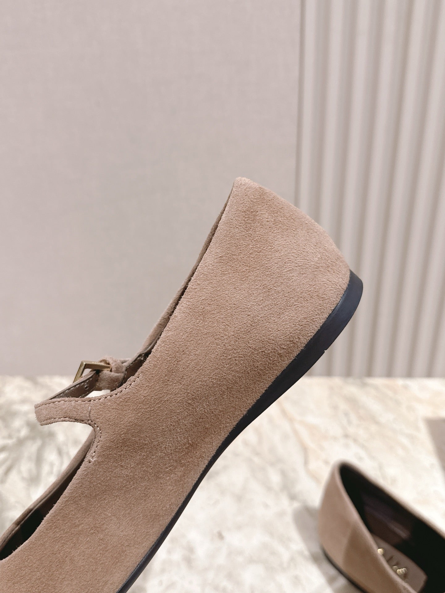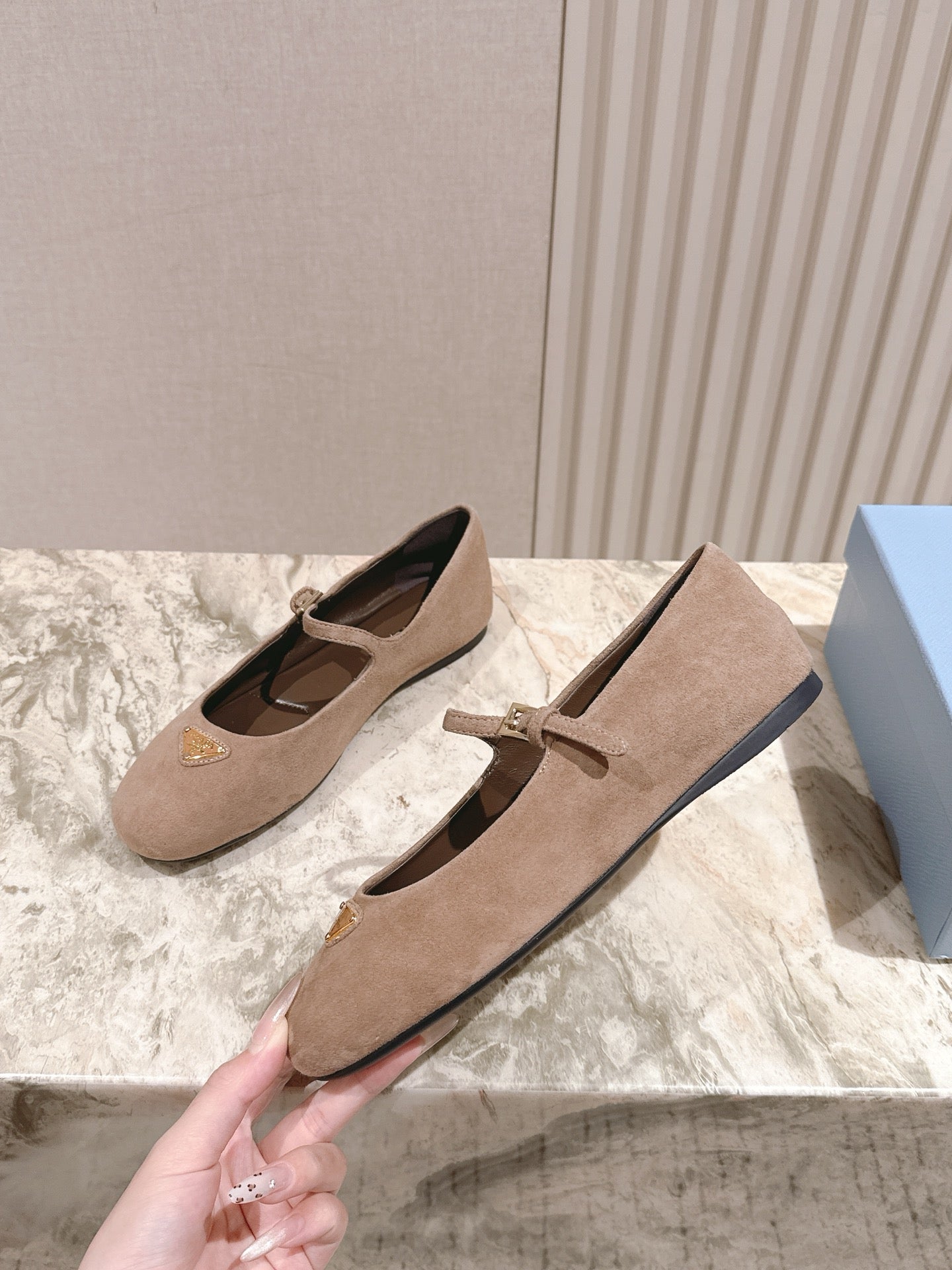 PRA 25s Ballet Flats with Small Buckle Light Brown Suede 449707