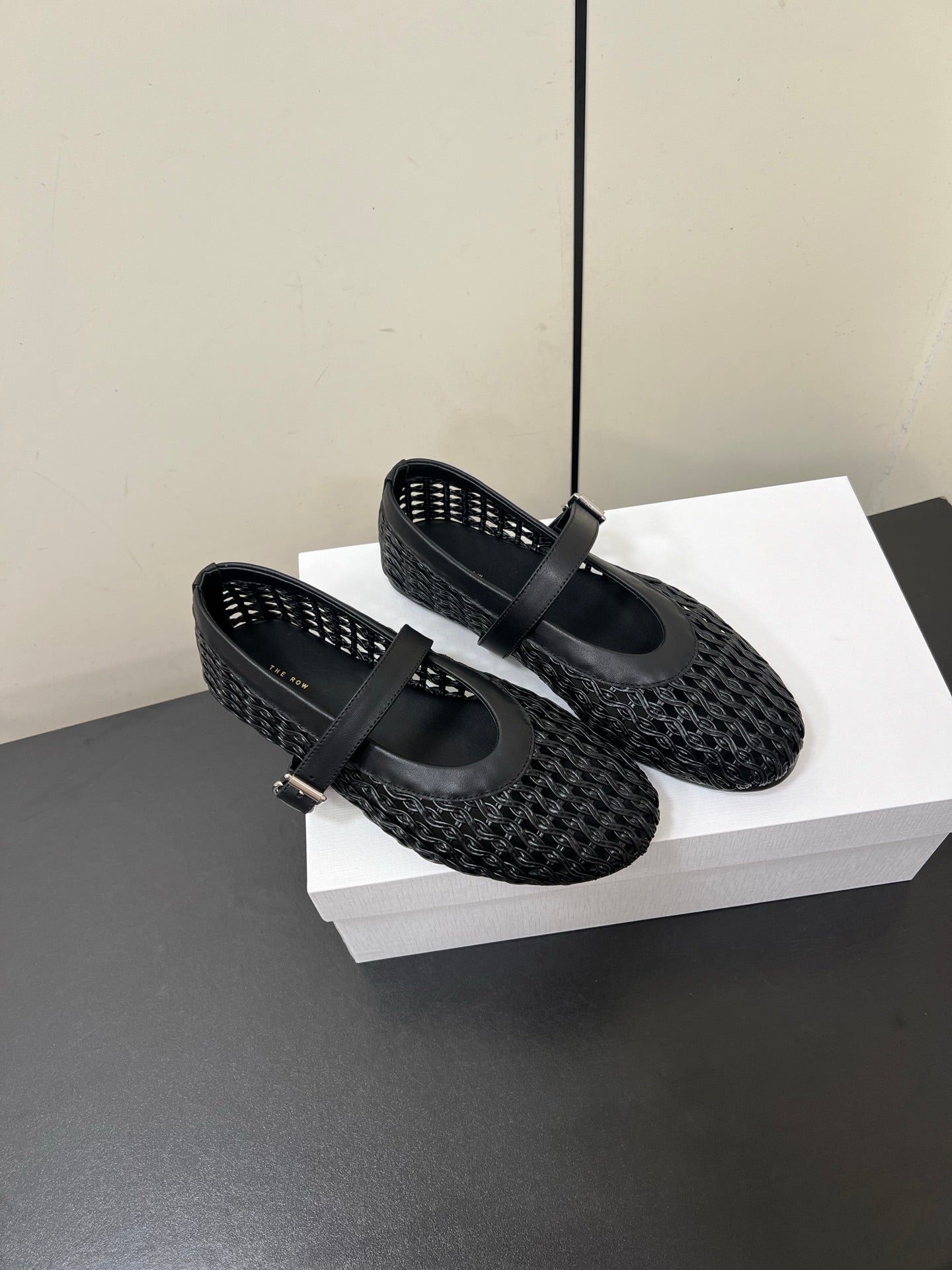 The Row 25ss Mary Jane Flat Black Mesh Cowhide 340043