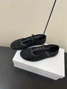 The Row 25ss Square T-Strap Flat Black Mesh Cowhide 340041