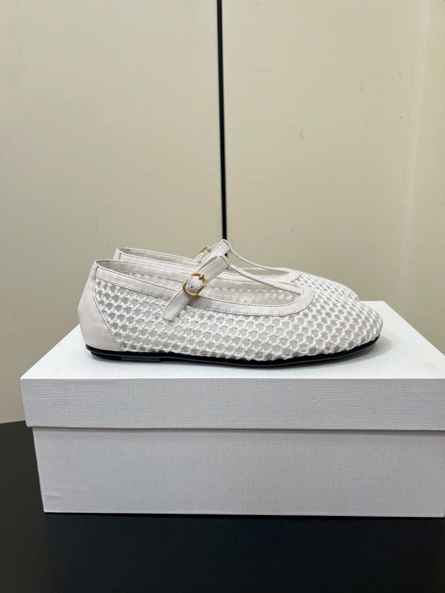 The Row 25ss Square T-Strap Flat White Mesh Cowhide 340040