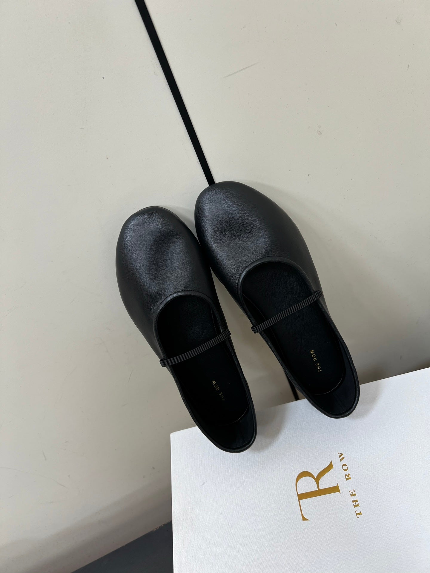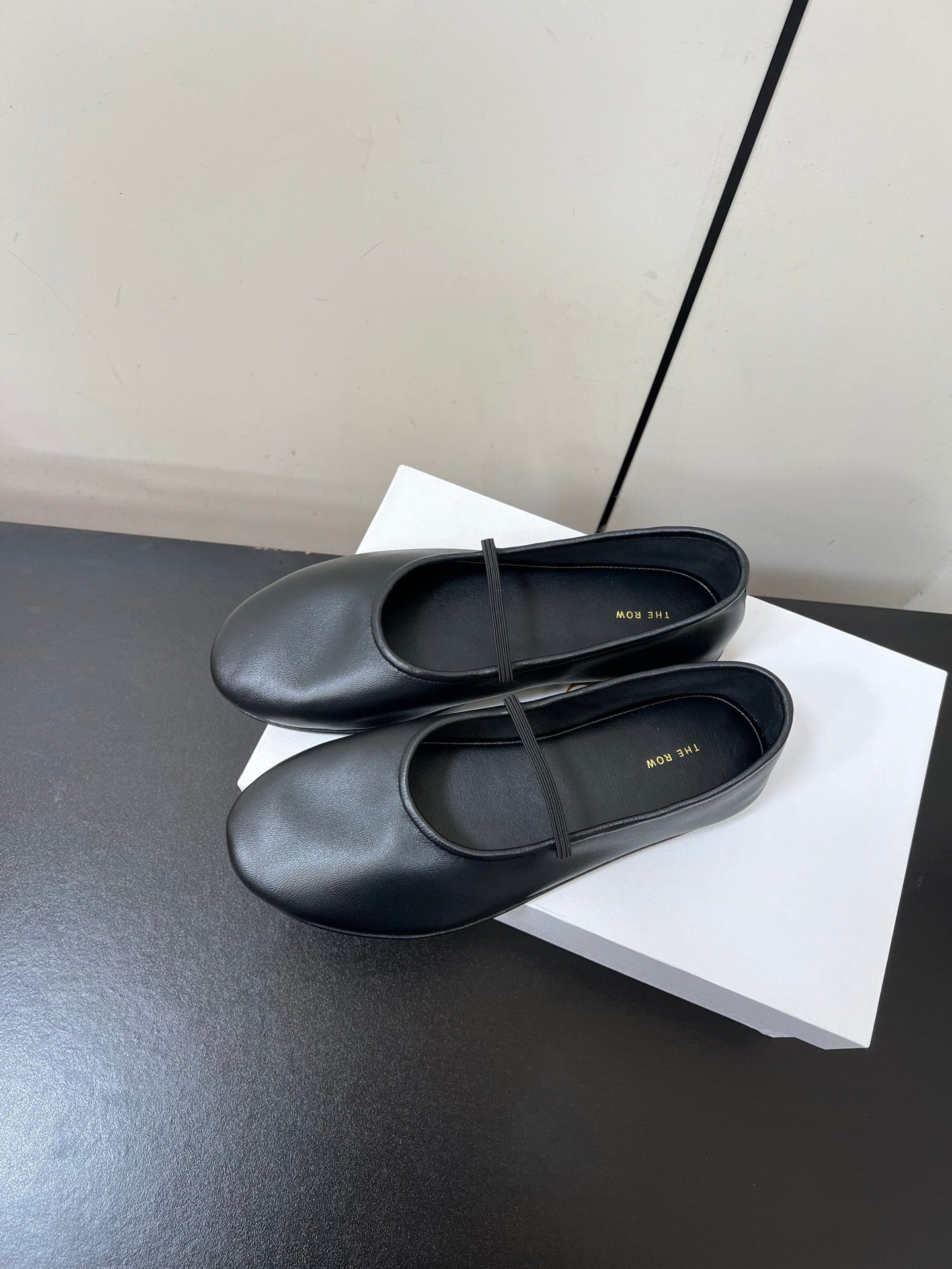 The Row Elastic Ballet Flats Black Calfskin 339994