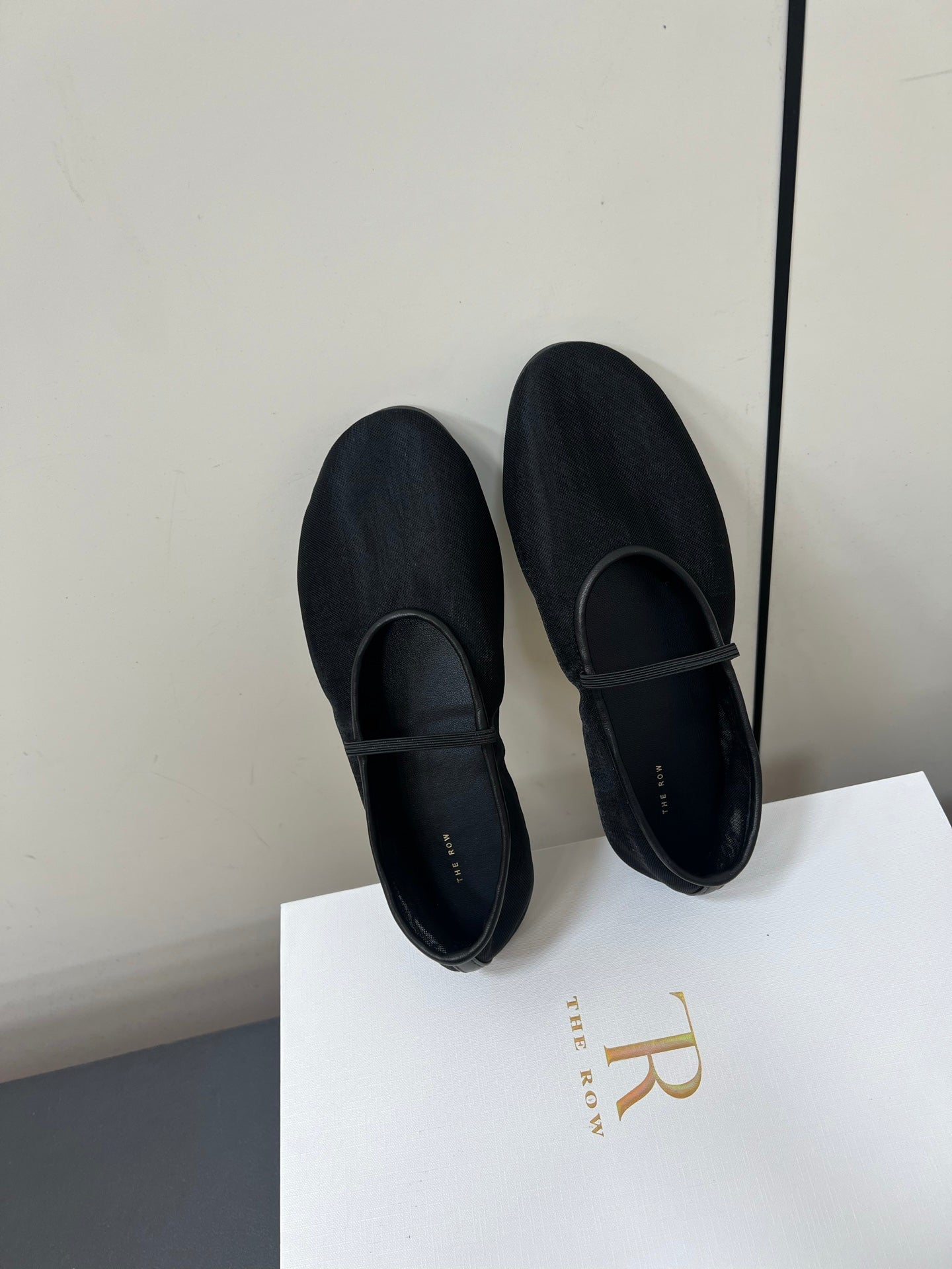The Row Elastic Ballet Flats Black Lambskin 339990