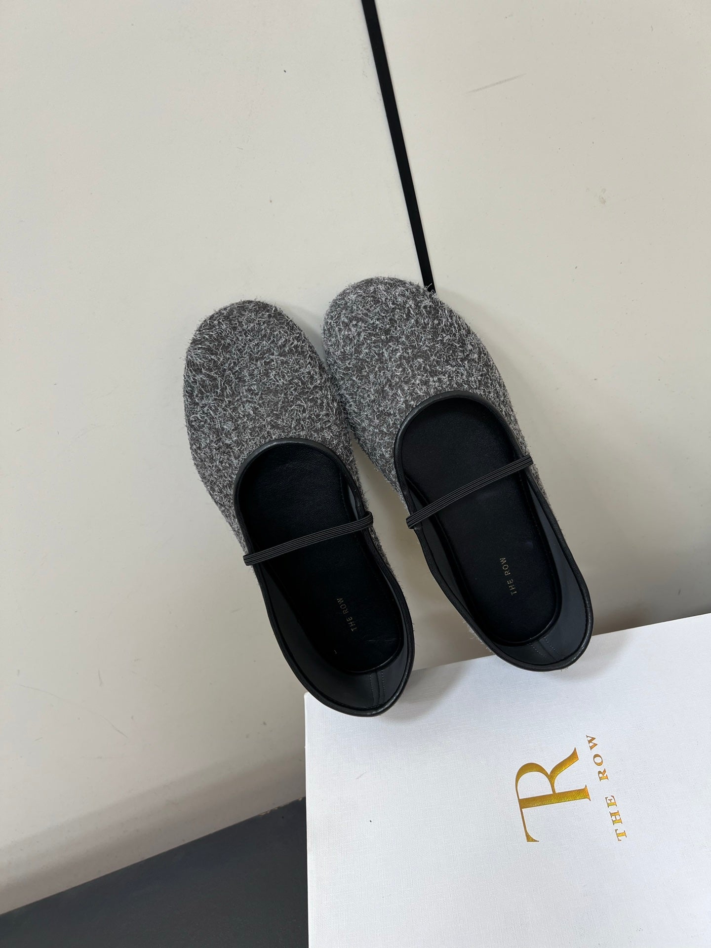 The Row Elastic Ballet Flats Light Grey Sheepskin 339992