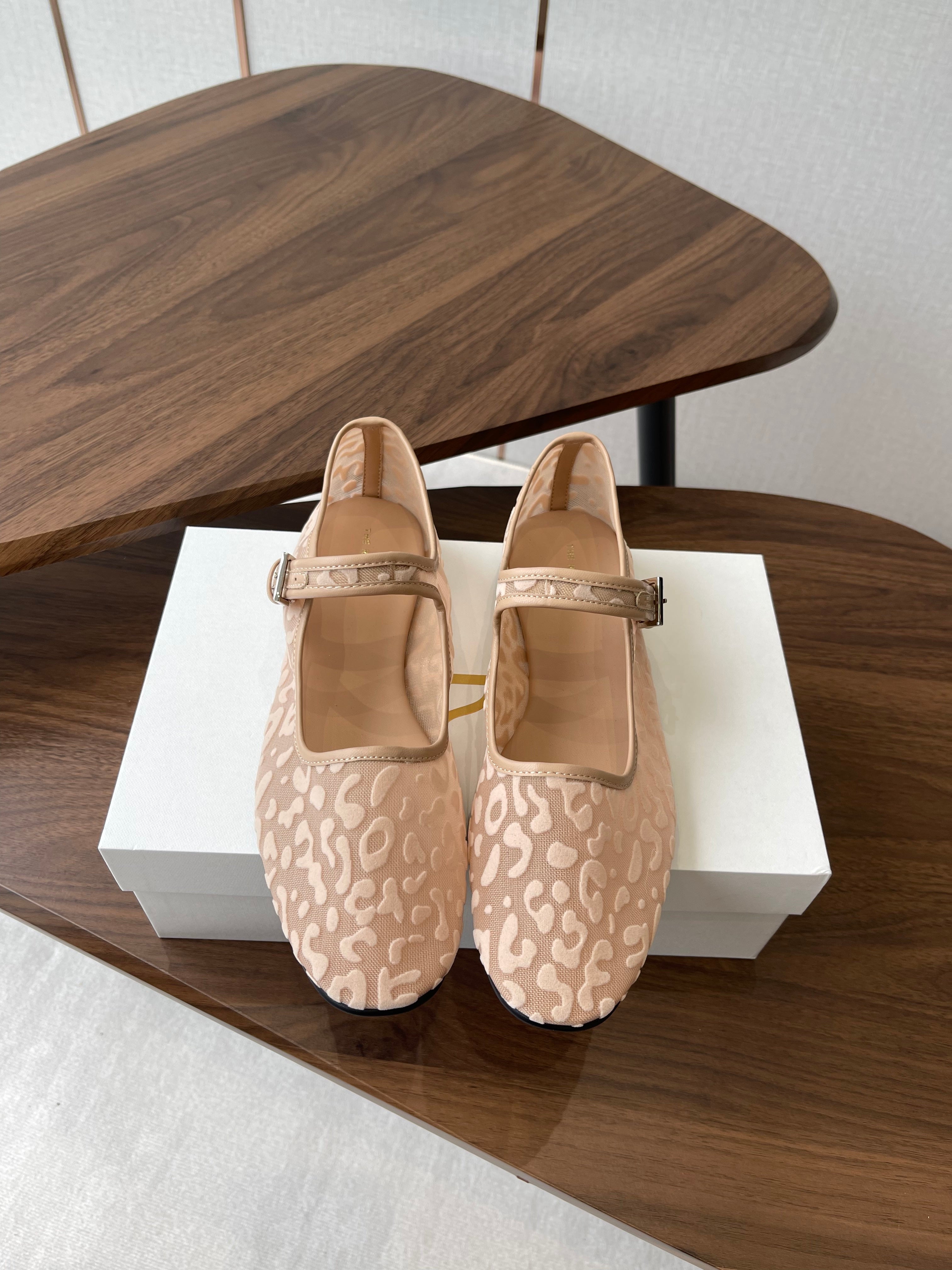 The Row Mary Jane Nude Beige Mesh And Sheepskin 330803