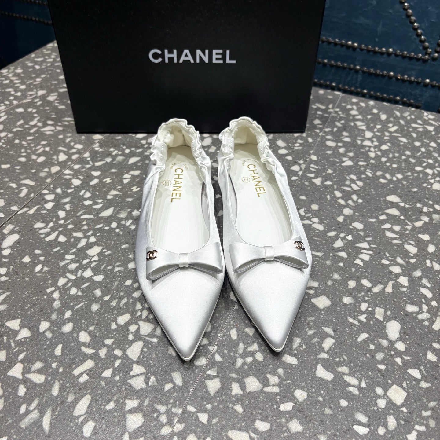 CC 25s Métiers d’art Ballet flats 10mm White Silk Satin 423793