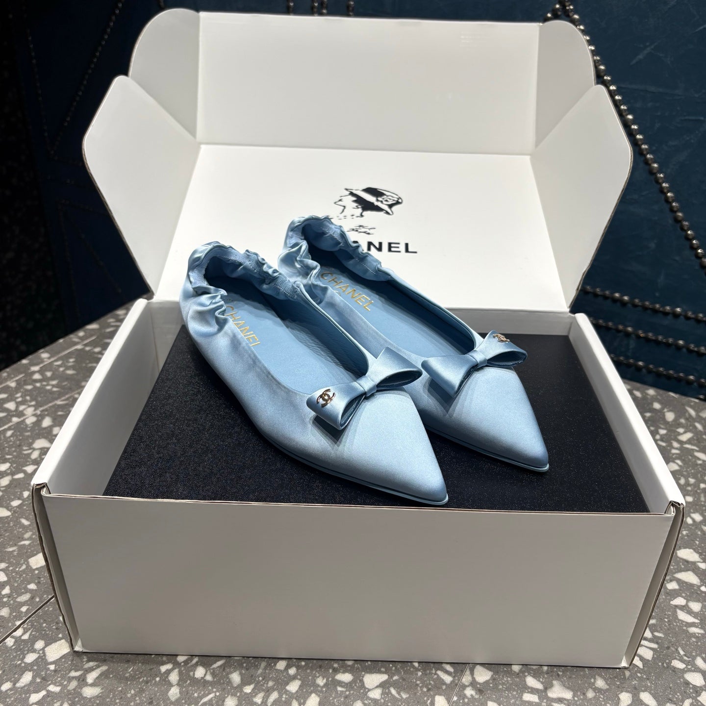 CC 25s Métiers d’art Ballet flats 10mm Blue Silk Satin 423794