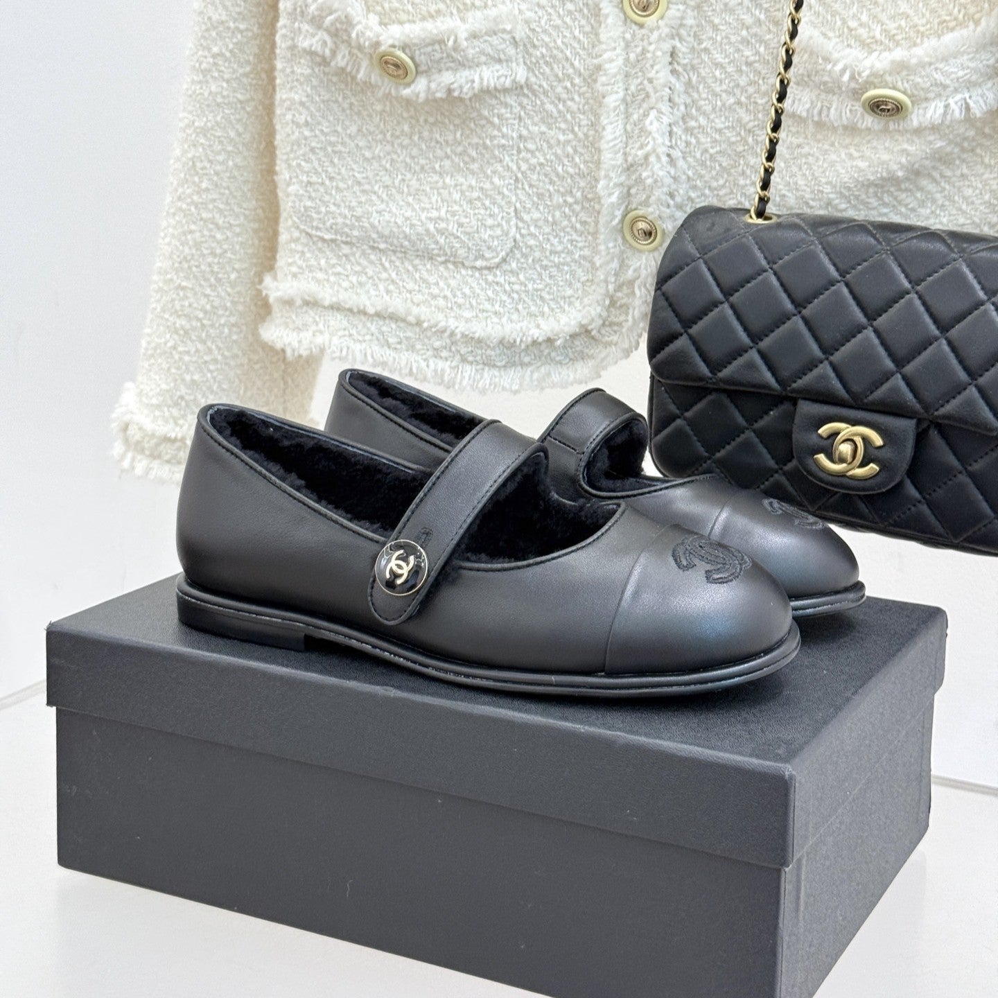CC 25A Mary Janes Black Sheepskin And Lambswool 404667