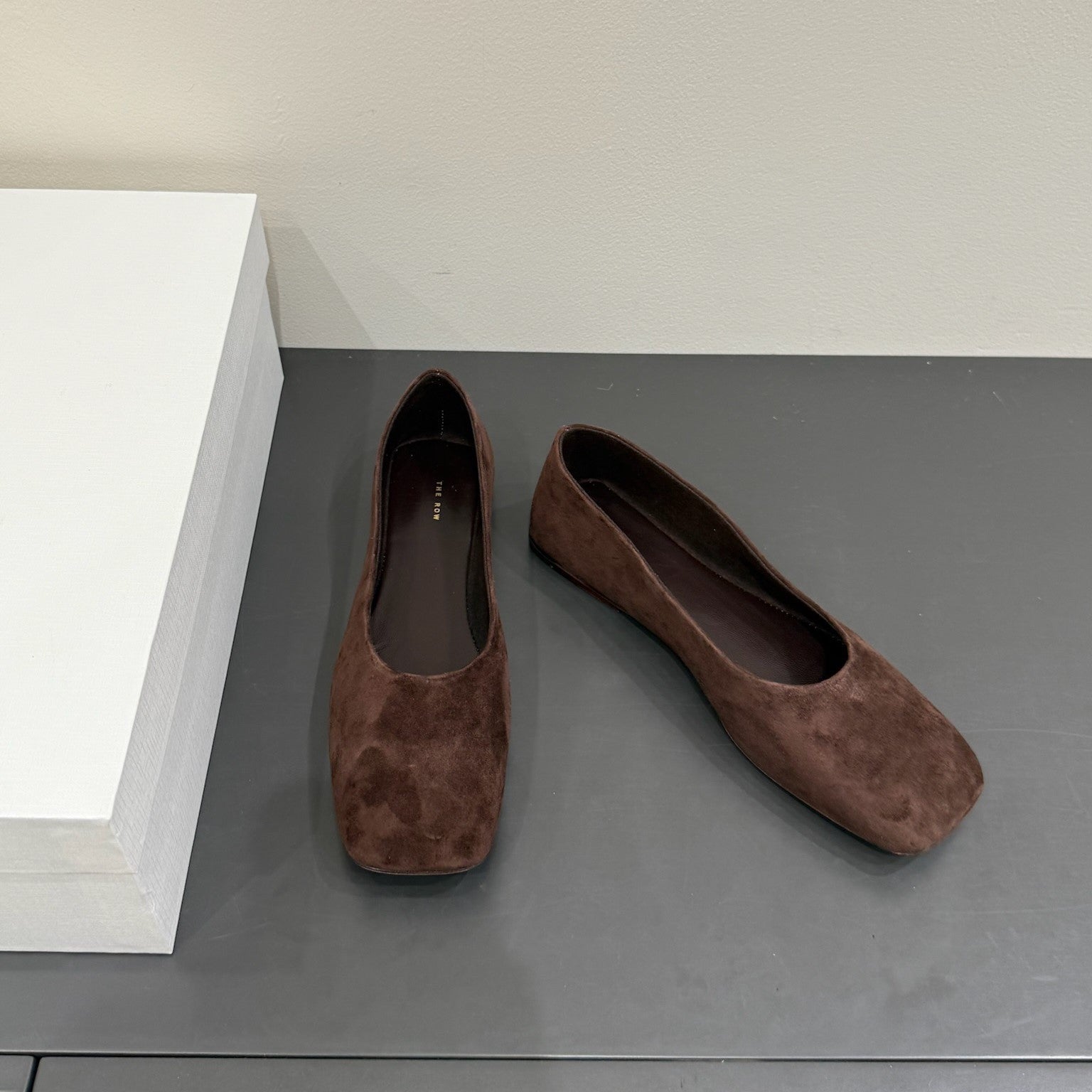 The Row Ballet Flats Dark Brown Cow Suede 337495