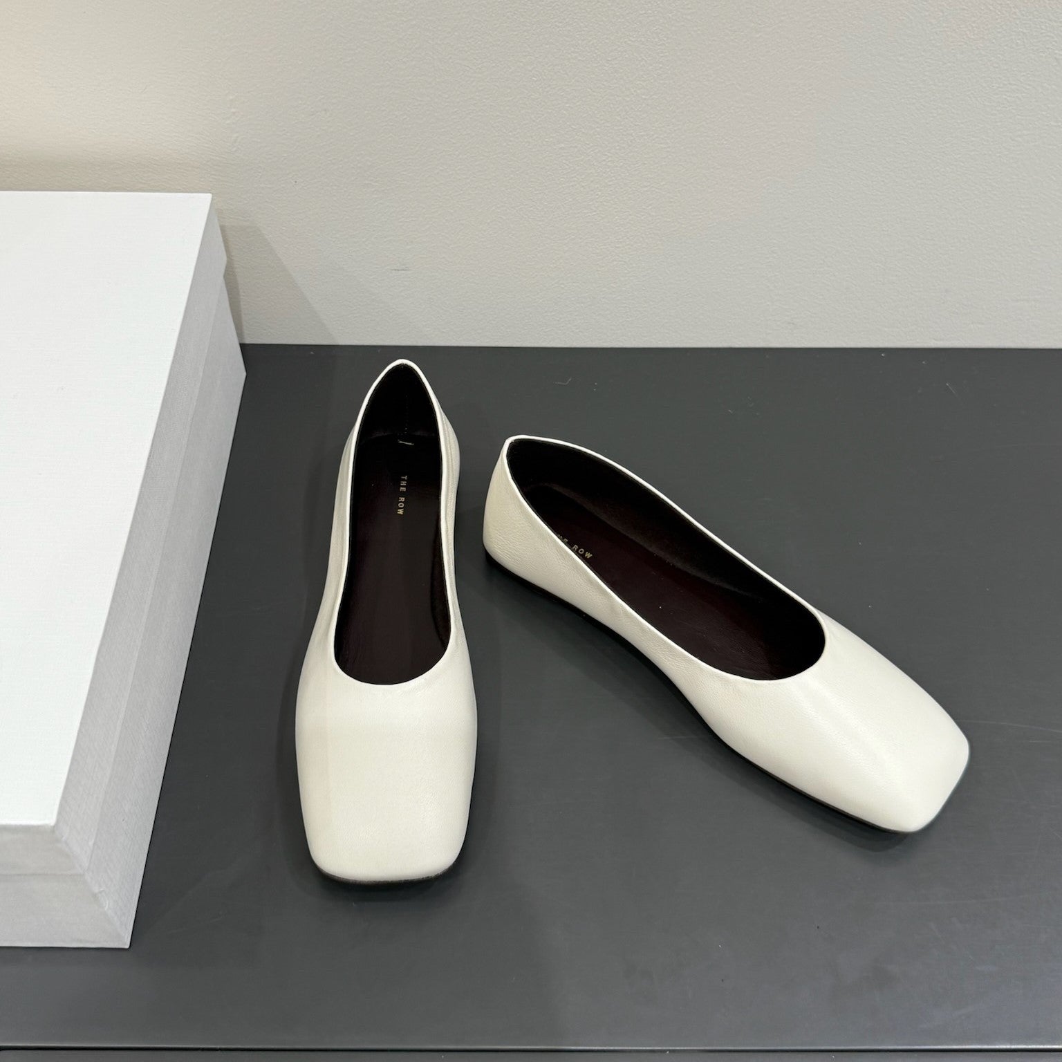 The Row Ballet Flats White Cowhide 337496