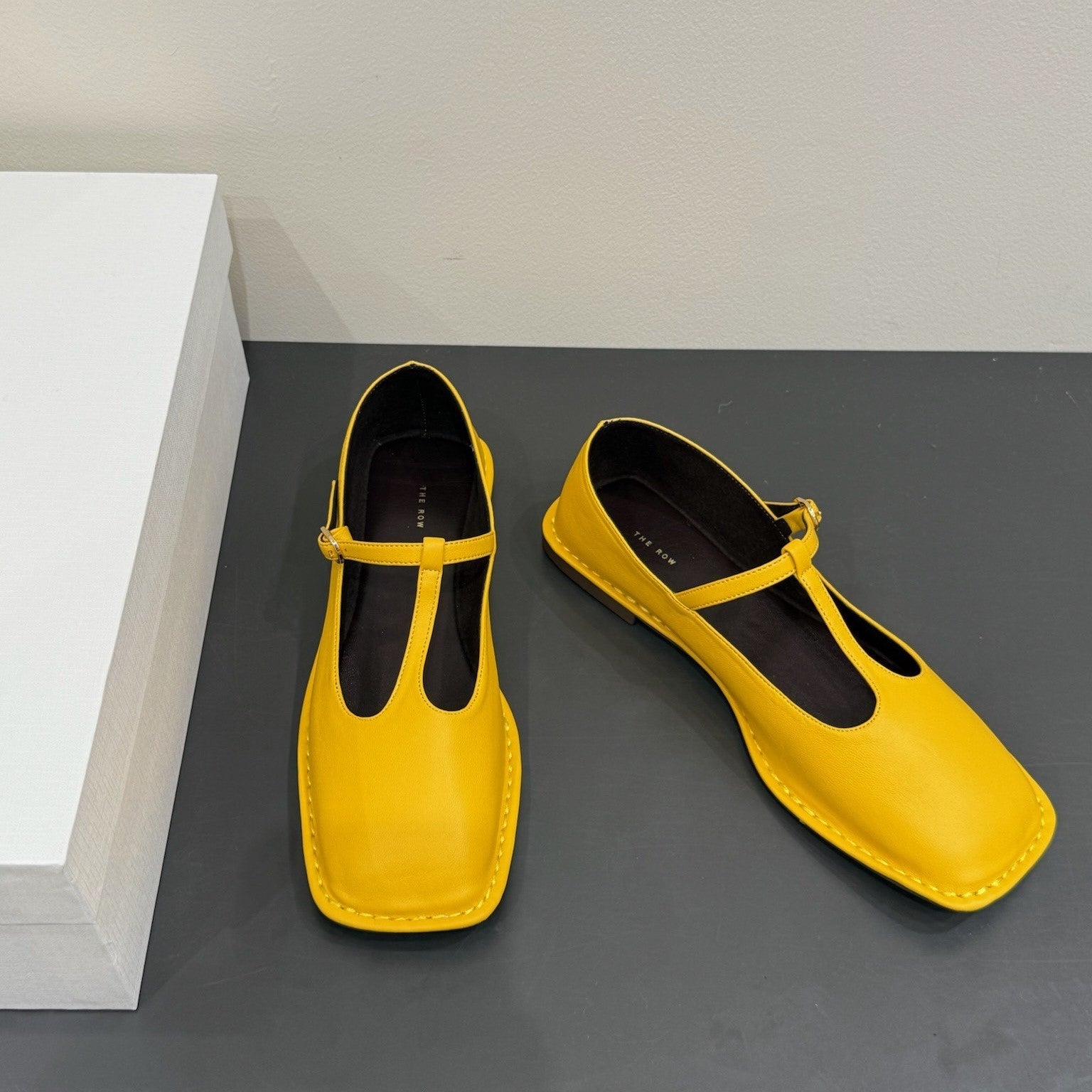 The Row Square T-Strap Flat Yellow Sheepskin 337497