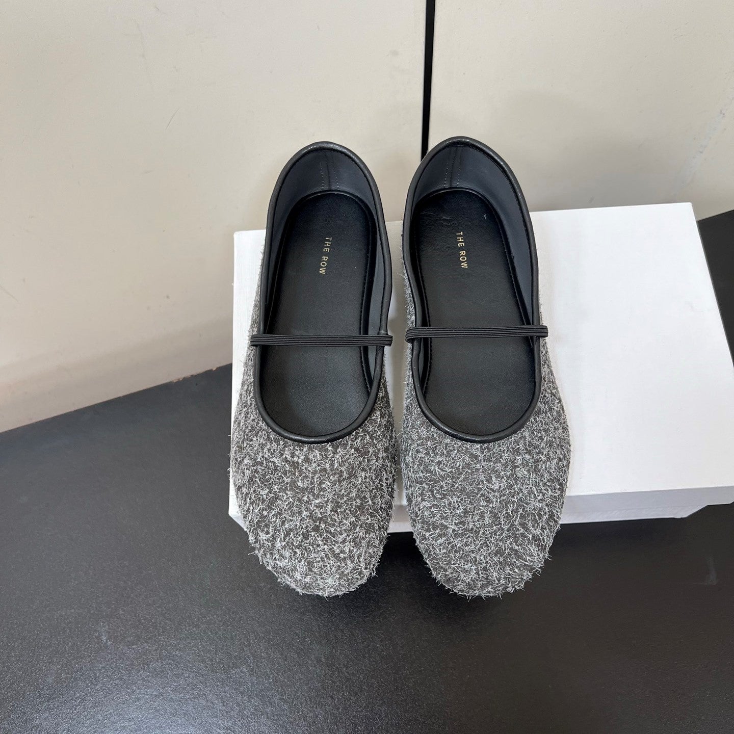 The Row Elastic Ballet Flats Light Grey Sheepskin 339992