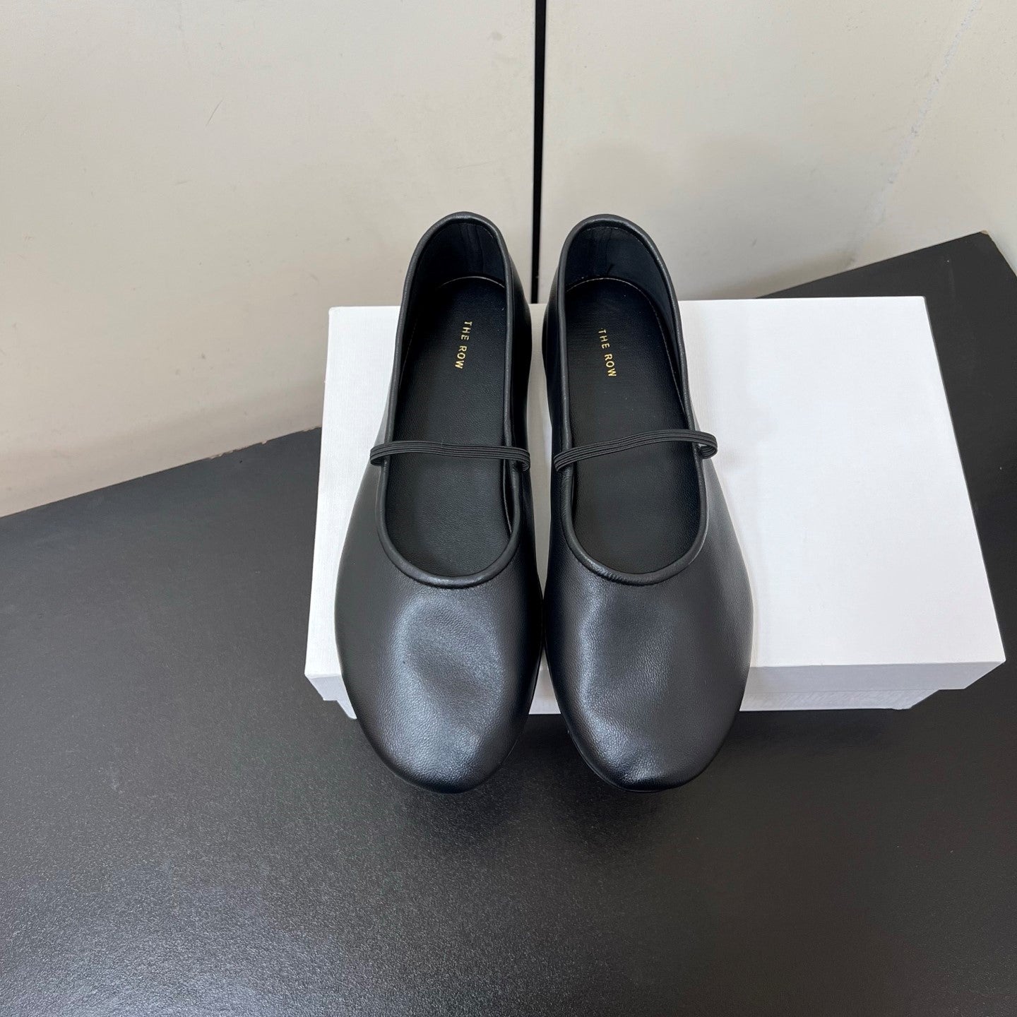 The Row Elastic Ballet Flats Black Calfskin 339994