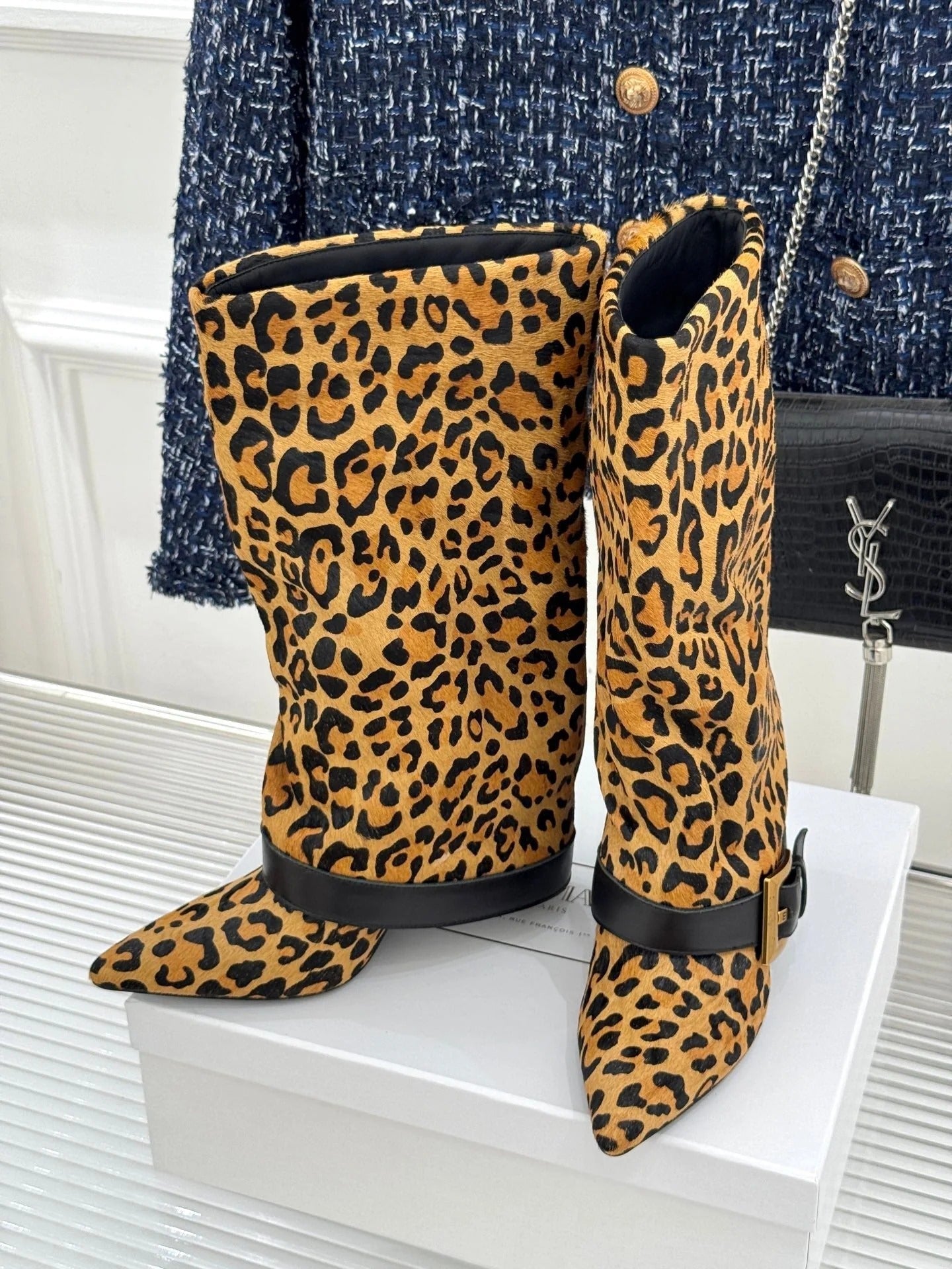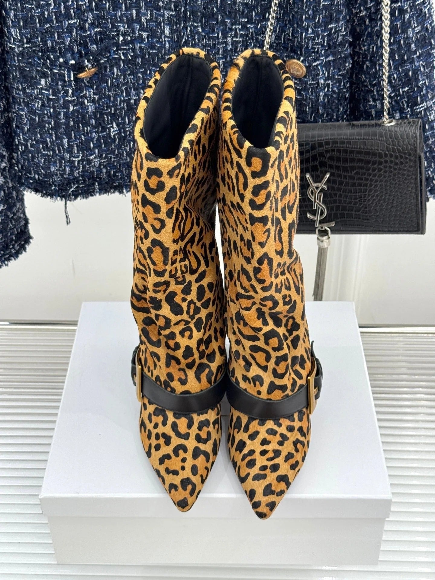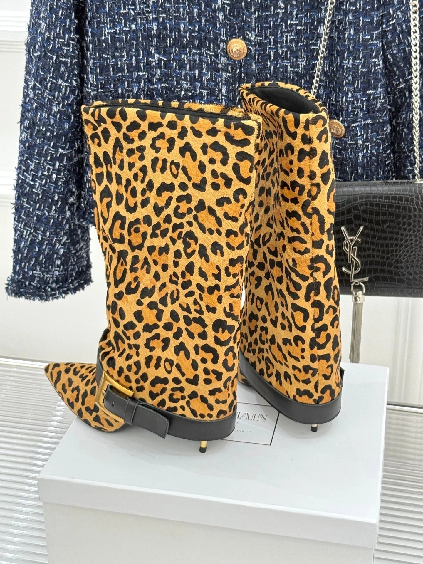 BALMAIN 25S ANTHEM BOOTS IN LEOPARD PRINT CALFSKIN