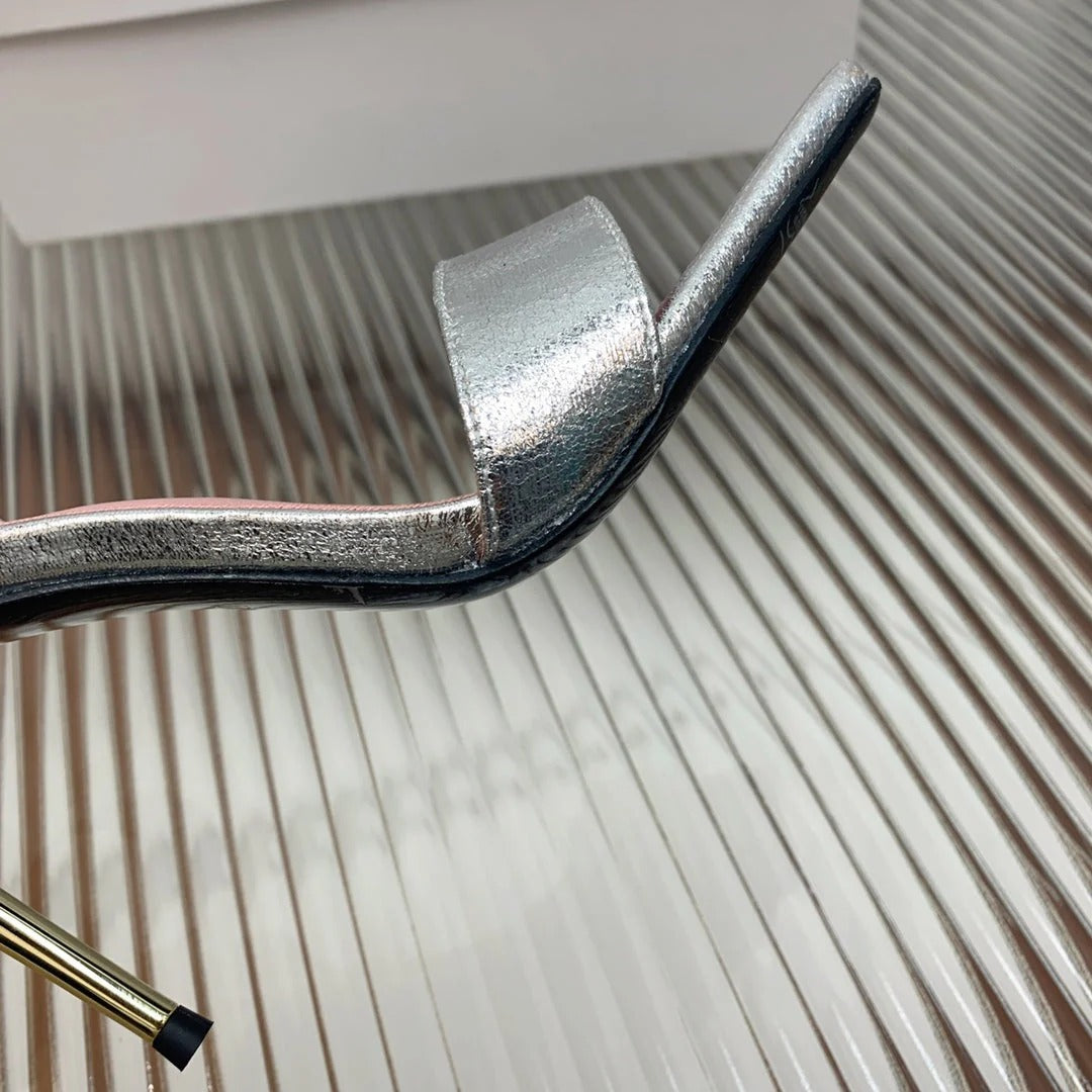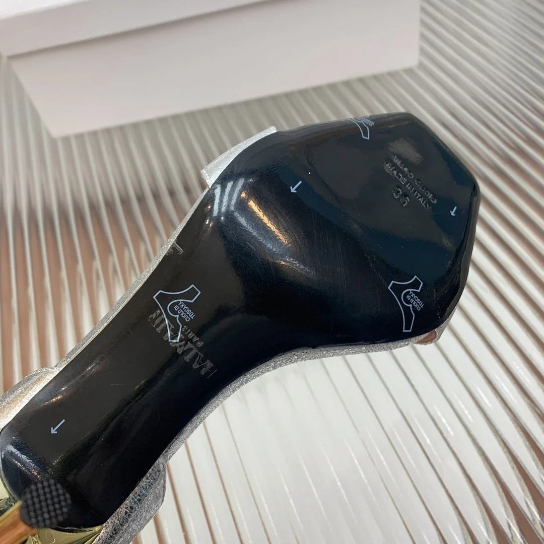 BALMAIN 25S B STRAP HIGH HEEL SANDALS 95MM IN SILVER CALFSKIN