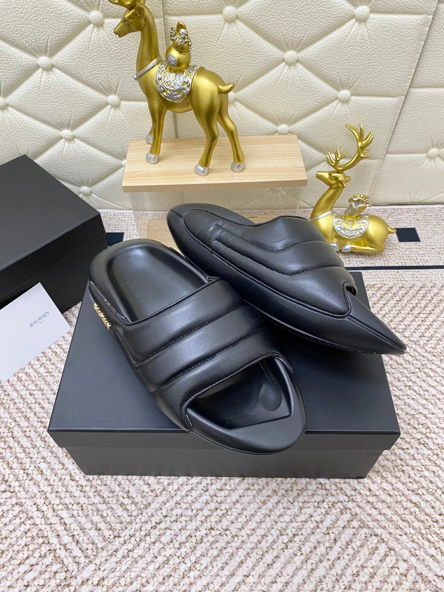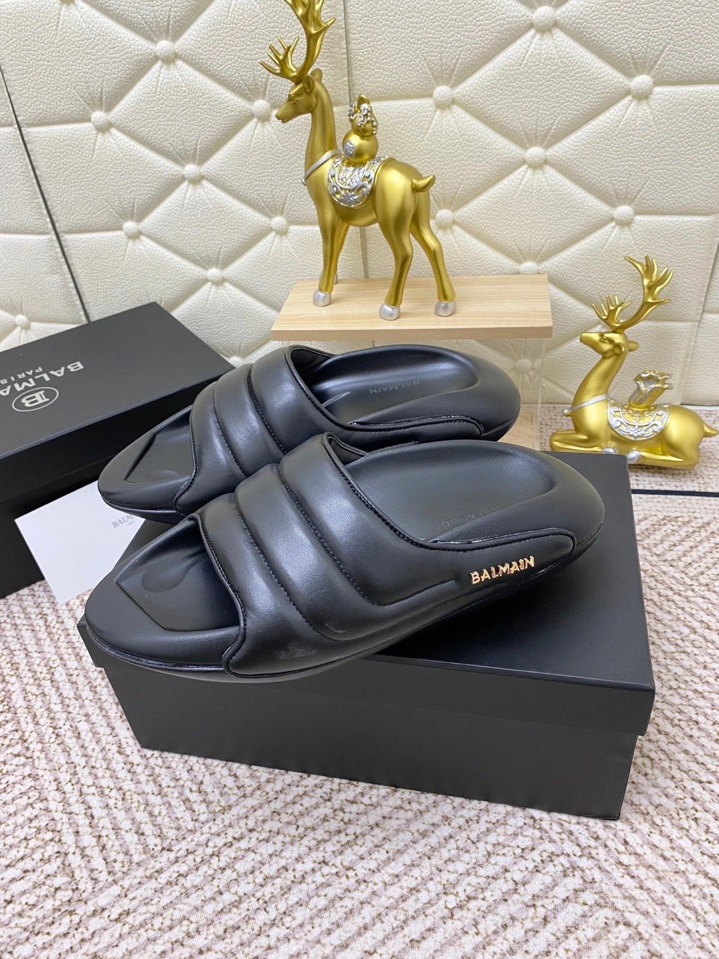 BALMAIN 25S BALMAIN MULES IN BLACK FULL CALFSKIN