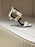 BALMAIN 25S CROSSOVER STRAP HIGH HEELS 95MM IN LIGHT GRAY CALFSKIN