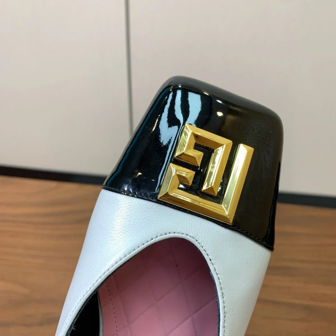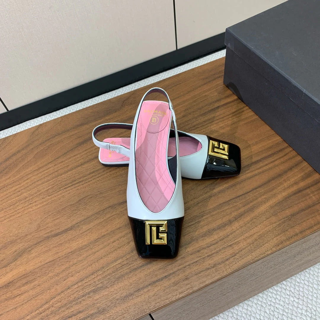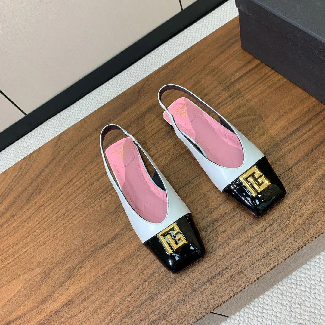 BALMAIN 25S FLAT EDEN SLINGBACKS IN BLACK AND WHITE CALFSKIN
