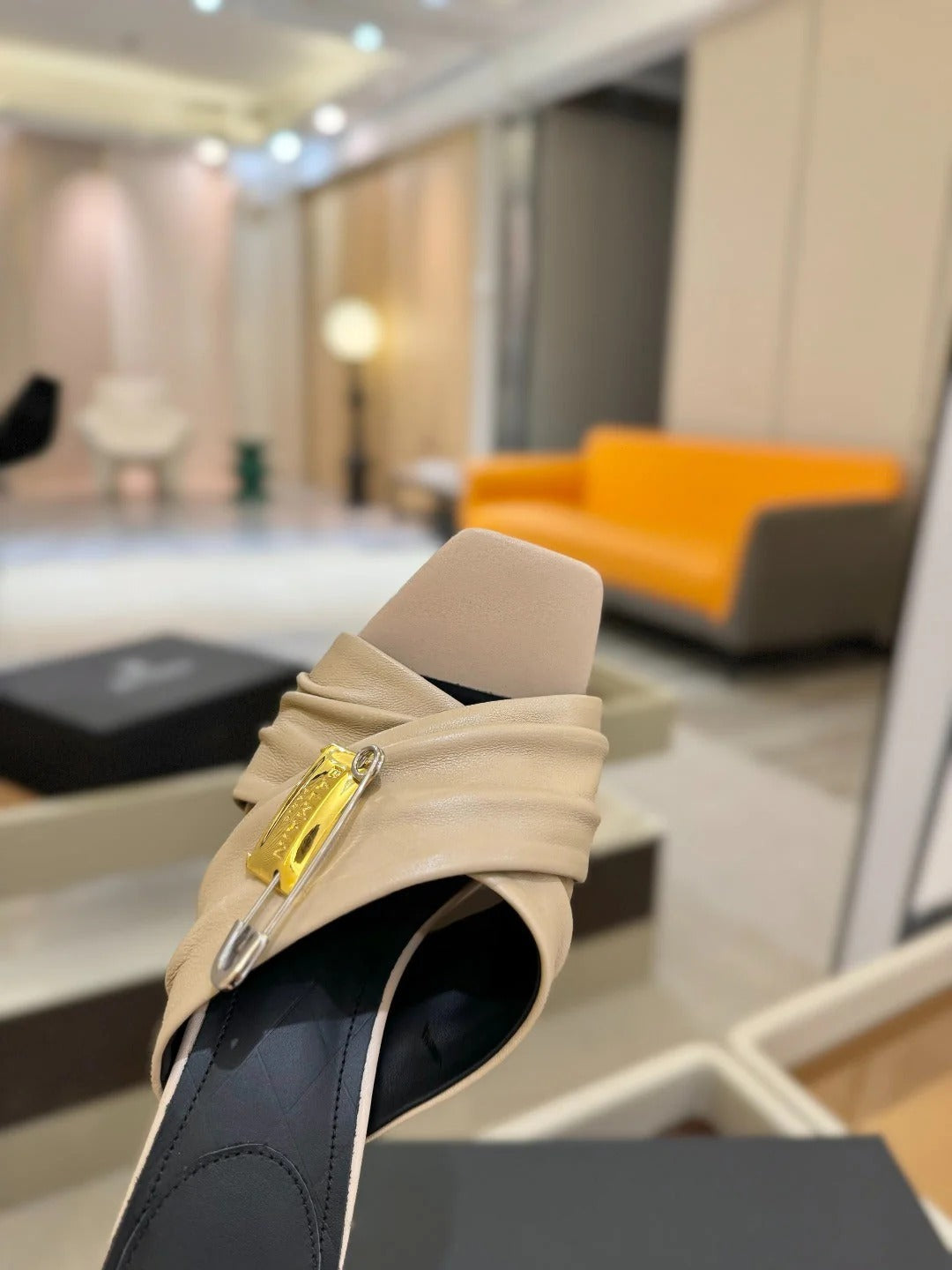 BALMAIN 25S HIGH HEEL SANDALS 95MM IN BEIGE CALFSKIN